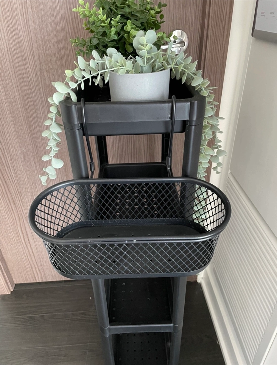 Bathroom Shelf Set with 2 Artificial Plants, Pots & Basket – Black