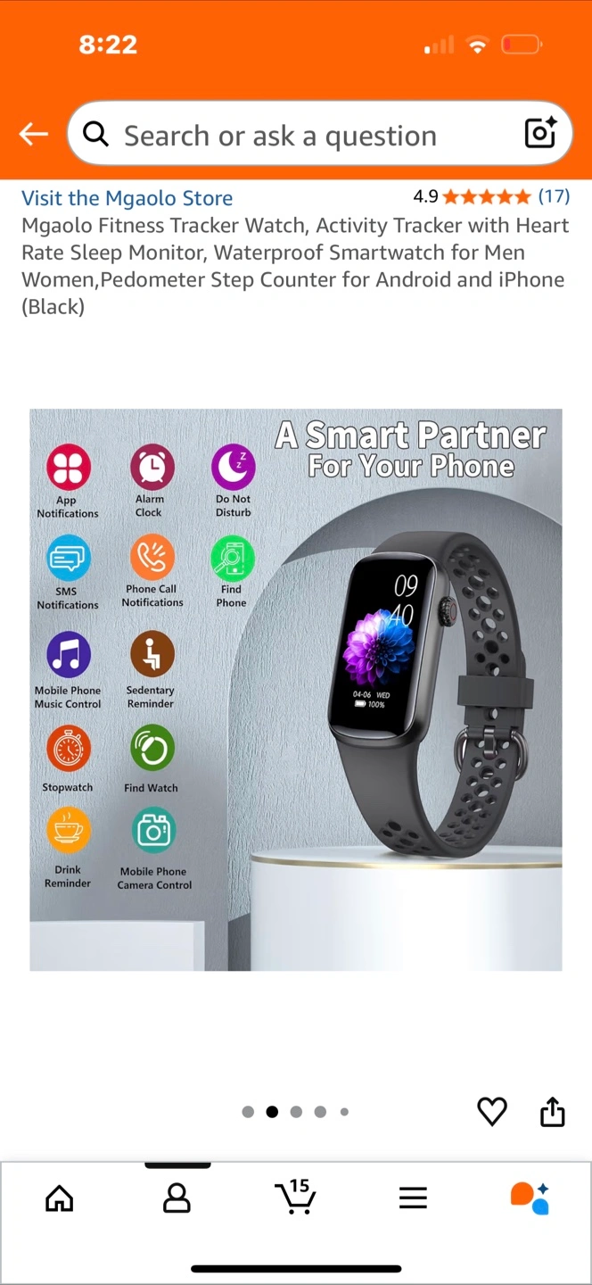 Selling a Mgaolo fitness tracker smartwatch in black! It's a great activity tracker with heart rate and sleep monitoring. It also has a pedometer step counter, perfect for Android and iPhone users. Stay connected and track your health with this handy device!