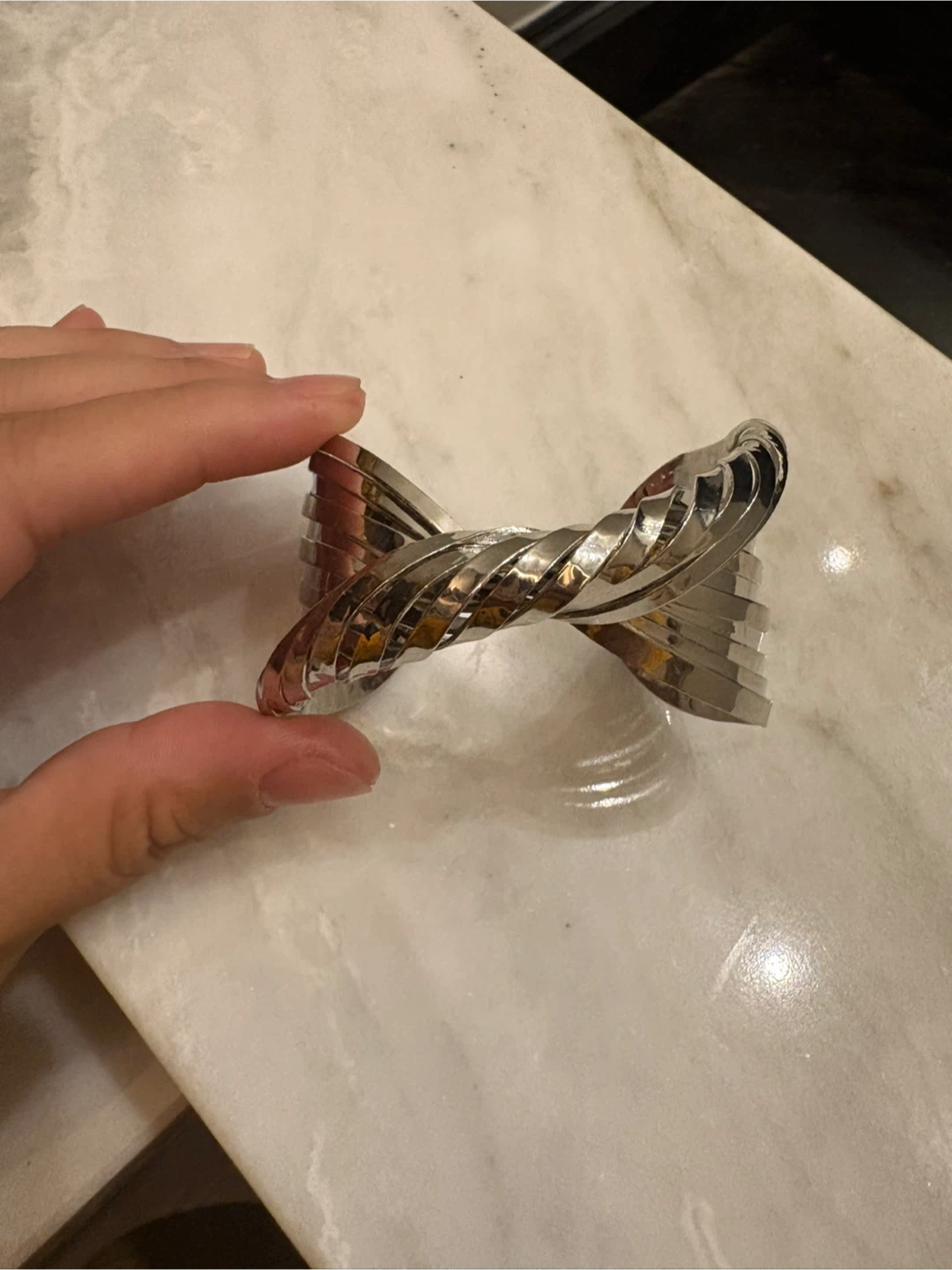 Here's a stylish bracelet that's sure to add a unique touch to any outfit! It's in great condition and ready to wear. Size adjustable