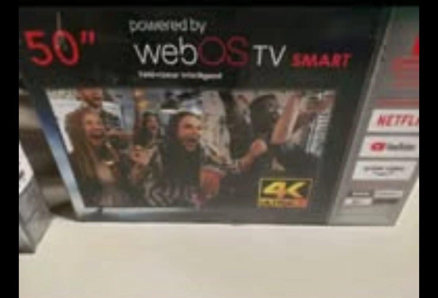 This is a a slightly used tv works like new RCA 50" 4K WebOS SMART UHD LED TV.