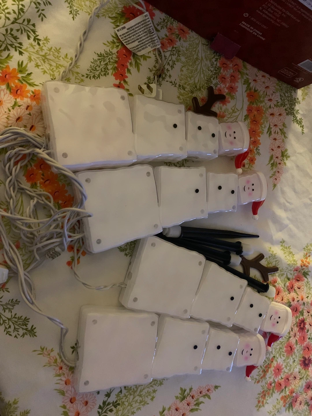 Snowman Path Lights! It comes with 4 snowman LED lights. The total height is 30.48 cm and the total length is 3.04 m. These lights are suitable for both indoor and outdoor use!