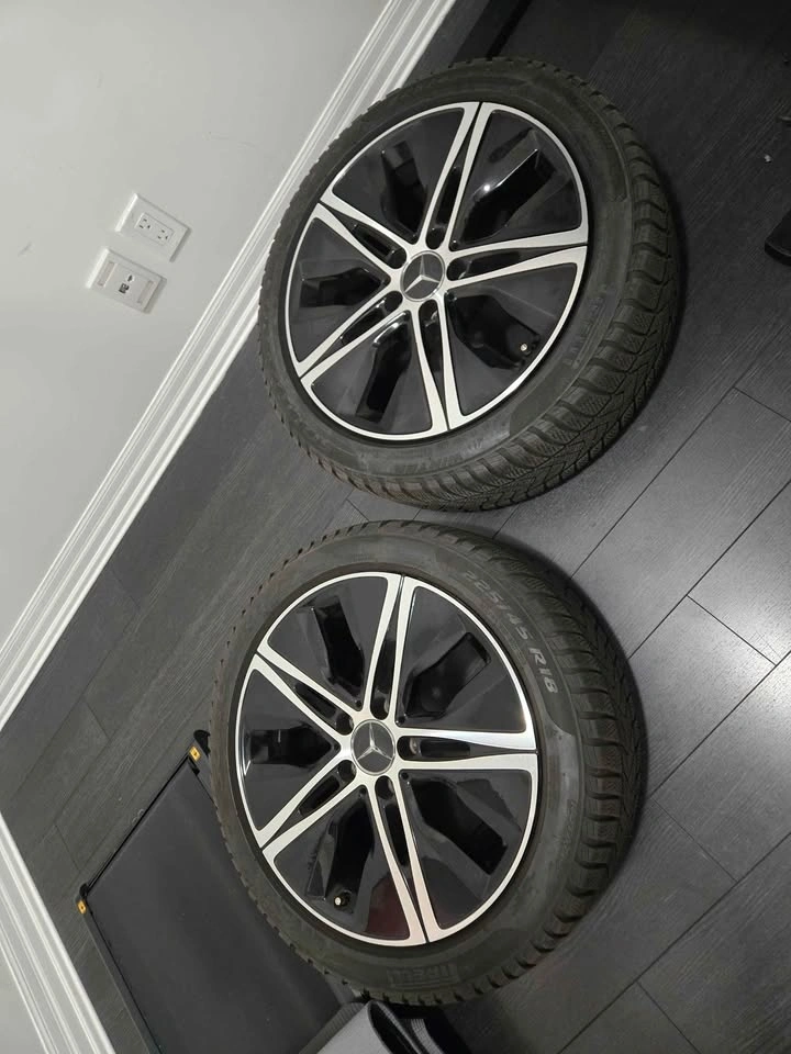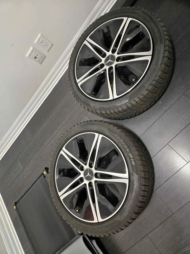 Selling a complete OEM Mercedes-Benz winter wheel + tire package. These came off a 2020 Mercedes A220 and are in perfect condition — no curb rash, bends, cracks, or corrosion. Tires and rims have only been used very lightly for two winter seasons, always stored indoors.