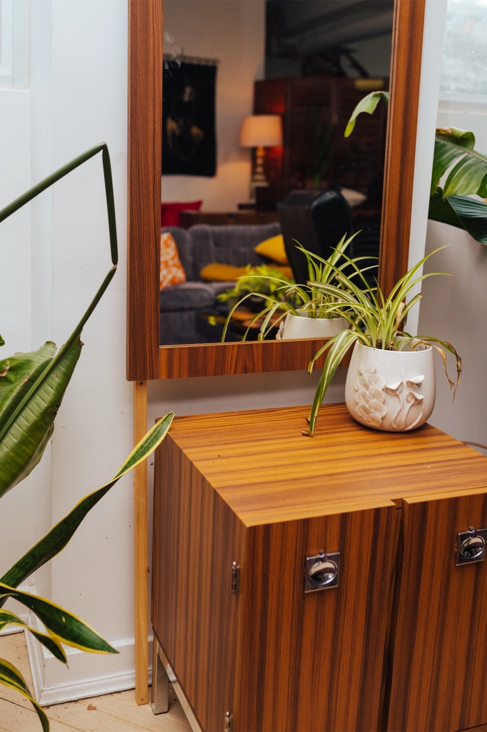 Era: 1970sZebrawood-effect veneer with natural grain striping