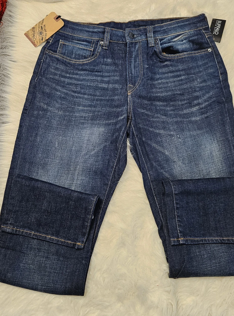 Here are some Buffalo Relaxed Tapered jeans in size 32x32. They're a nice dark blue sanded wash and ready for a new home!