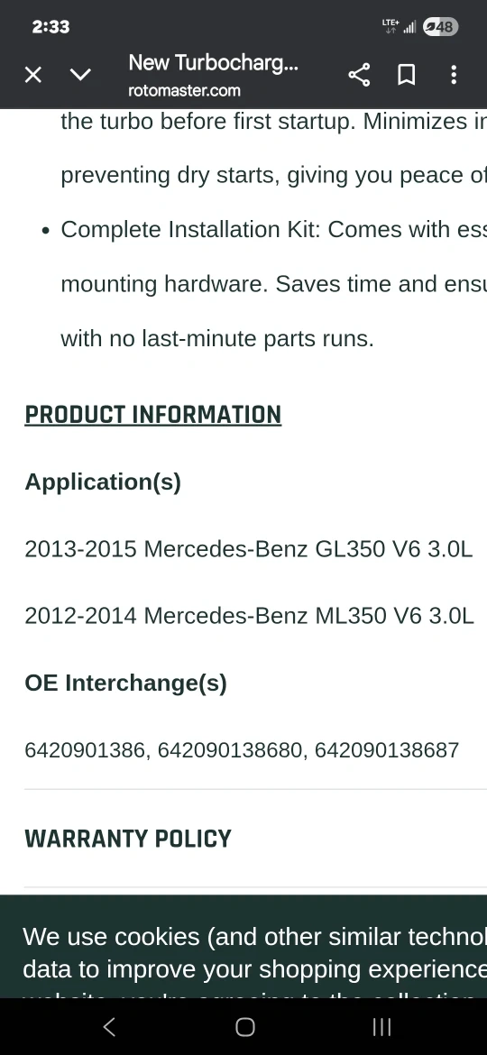!! FIRST COMES BASIS LOWEST PRICE!! BRAND NEW!!Selling a Rotomaster Turbocharger, part number A1200129N. It fits Mercedes-Benz GL350 and ML350 models from 2012-2015 with a V6 3.0L engine. Originally bought for $2,131.99