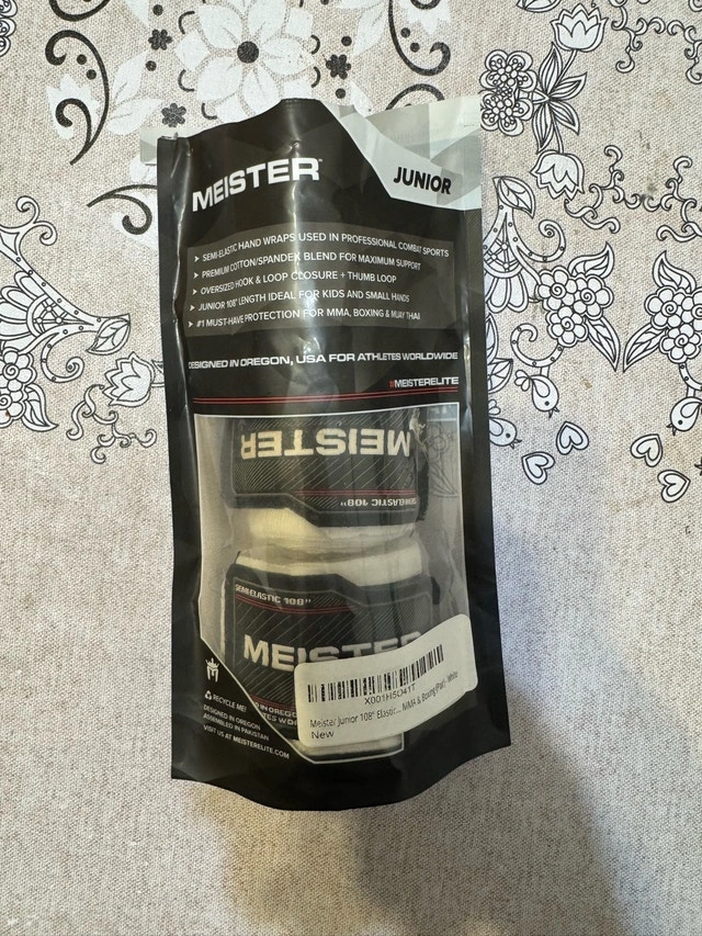 Get your young fighter ready with these Meister Junior 108" semi-elastic hand wraps, designed for boxing, MMA, and Muay Thai.