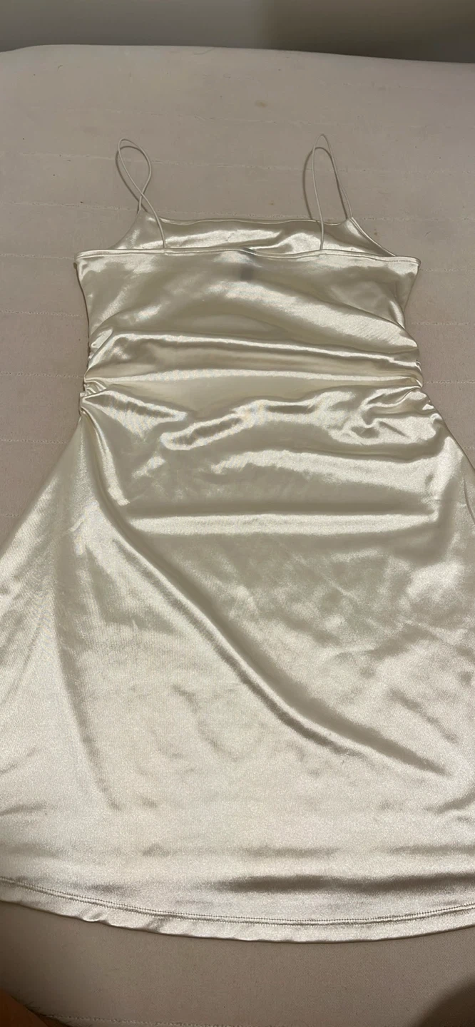 Selling a cute white mini dress! It's in great condition and would be perfect for a night out or a special occasion. The dress features a flattering silhouette and a comfortable fit