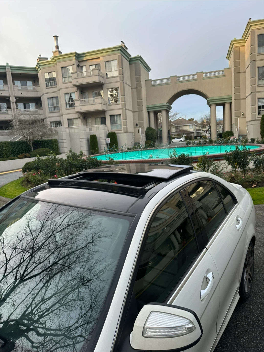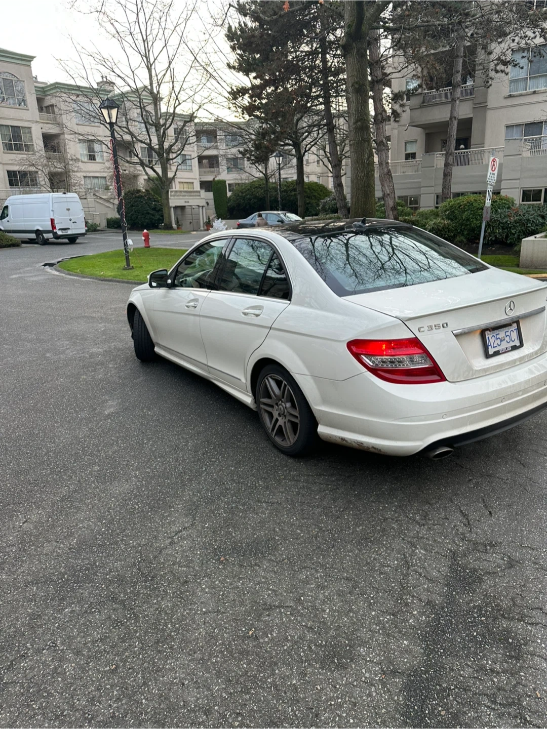 Selling a white Mercedes-Benz C350 4MATIC sedan. It has a black sunroof and AMG wheels. Please take a look at the photos for the condition!