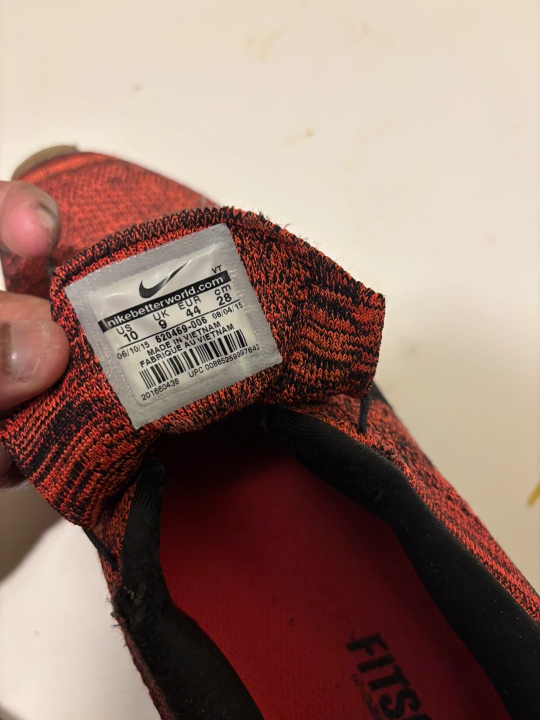 Selling a pair of Nike Air Max Flyknit sneakers. These are a US size 10 and feature a red and black knit design. They're in good condition and ready for a new owner!
