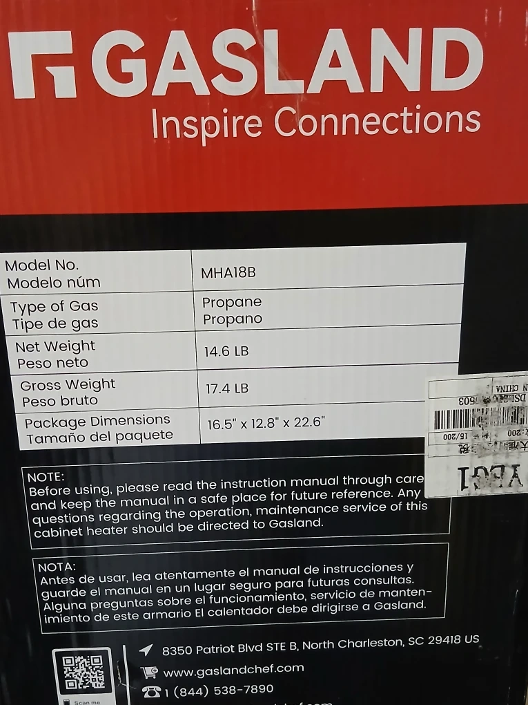New Gasland MHA18 Series Propane Radiant heater, 18,000 BTU