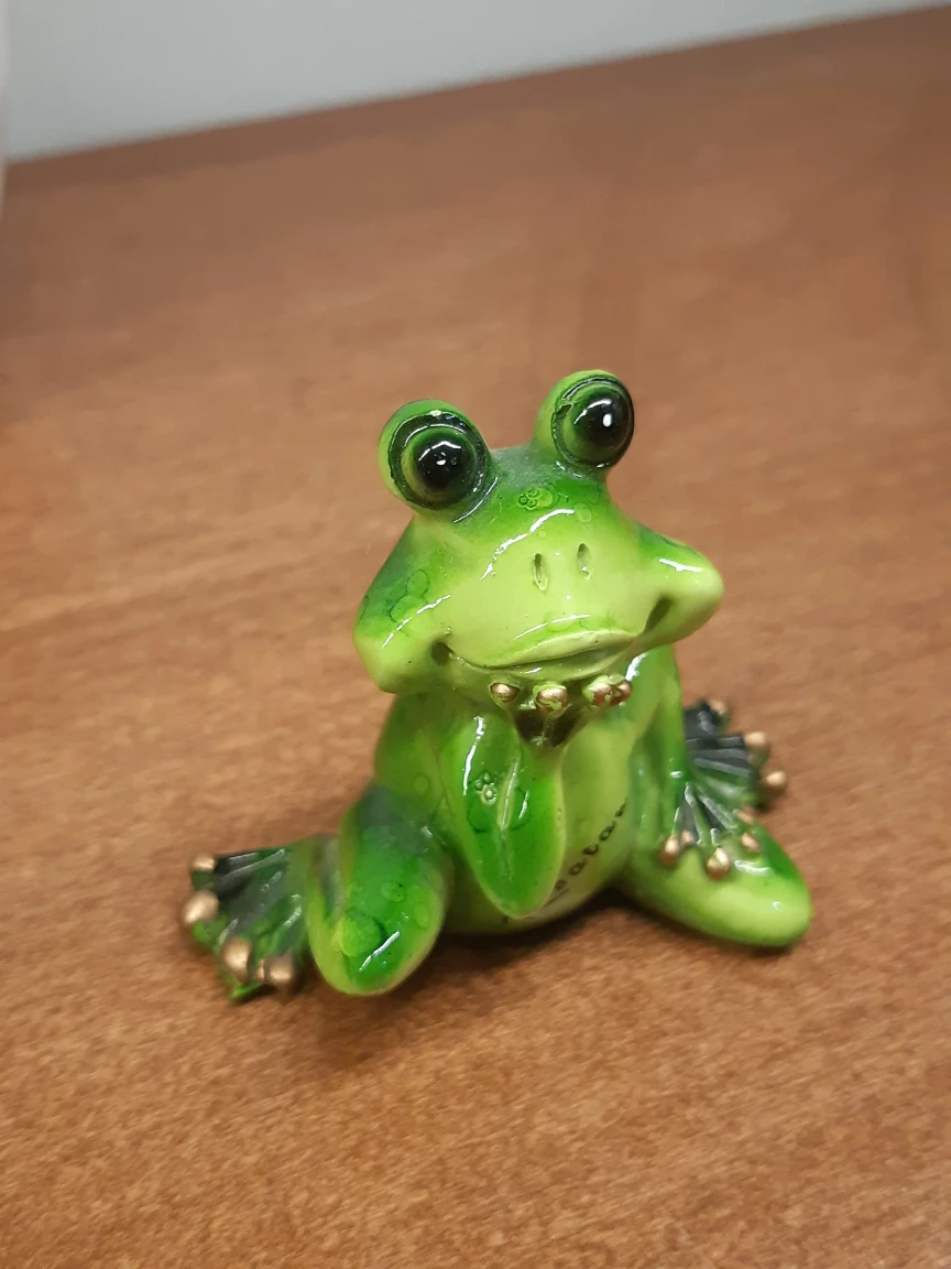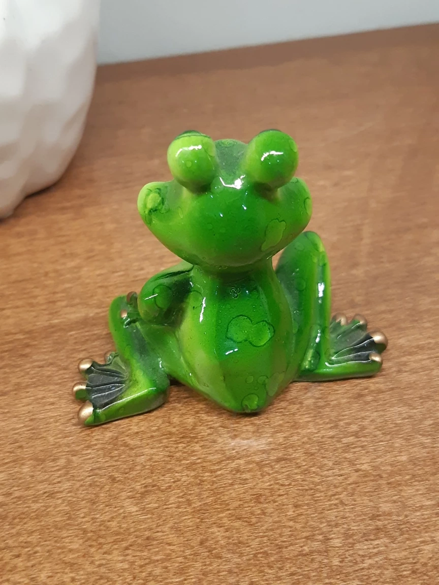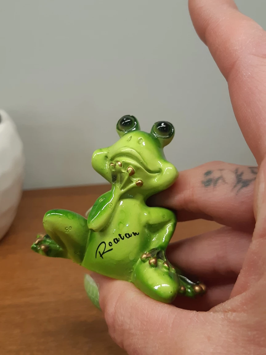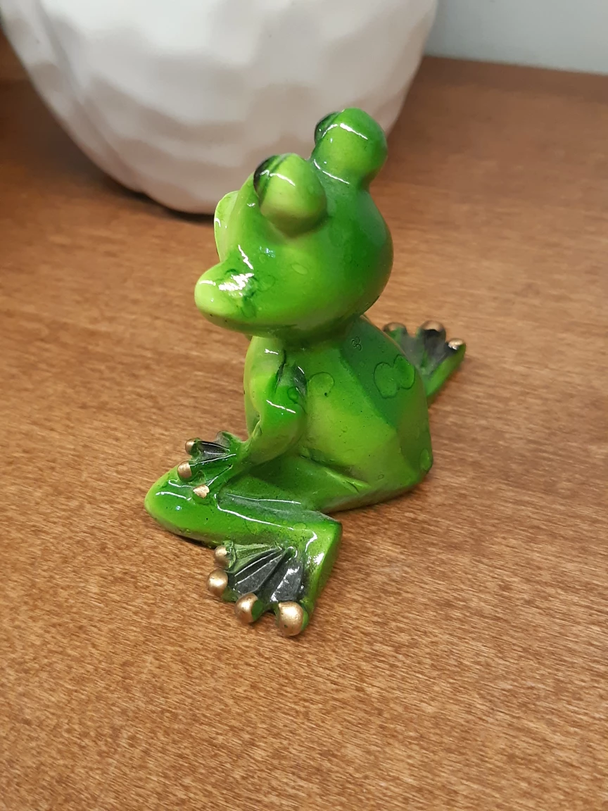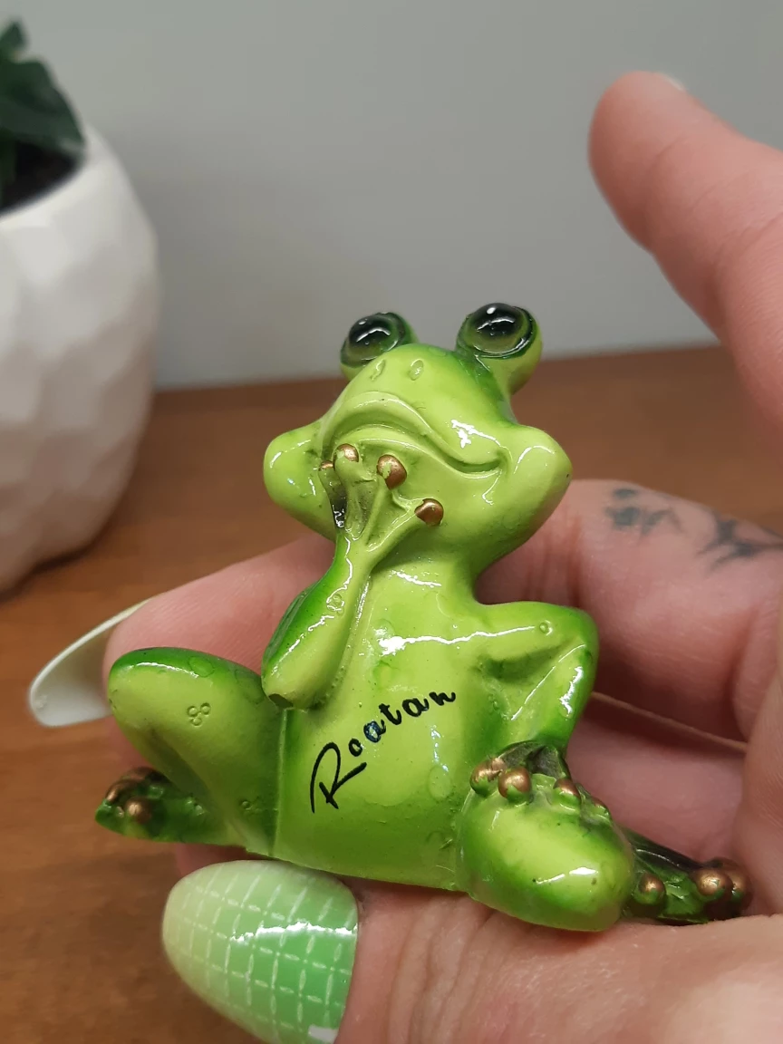 These types of ceramic frog figurines were popular in gift shops in tourist areas during the 1980s.
