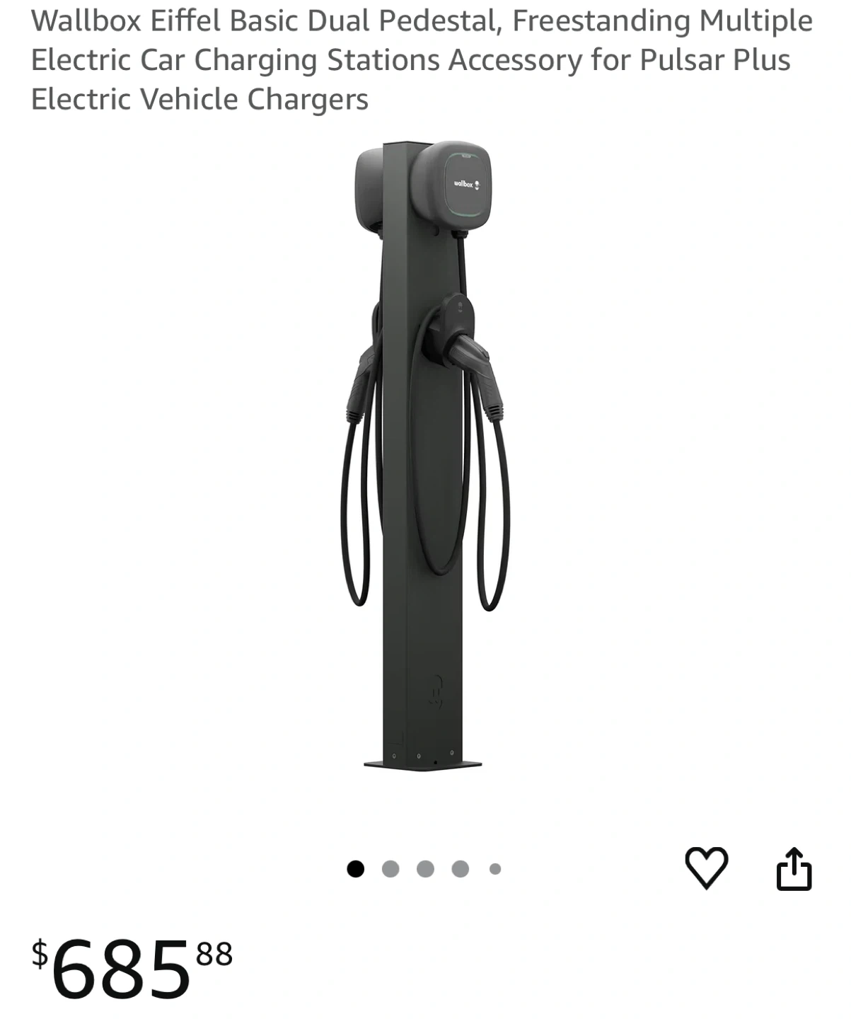 I am selling a new Wallbox Eiffel Basic Dual Pedestal, a freestanding multiple electric car charging stations accessory designed for Pulsar Plus electric vehicle chargers. This unit is in new condition and ready to enhance your EV charging setup.
