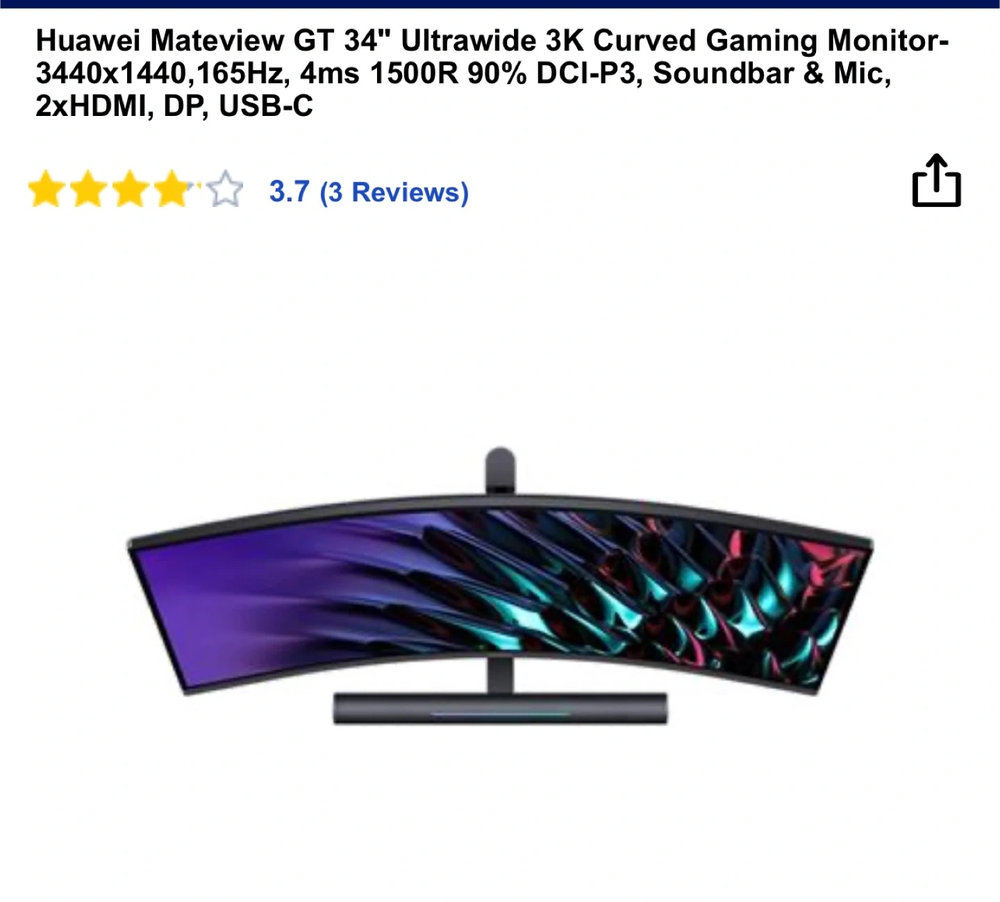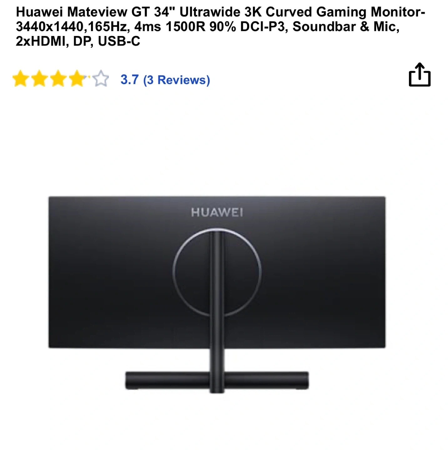 Selling a Huawei Mateview GT 34" Ultrawide 3K Curved Gaming Monitor.