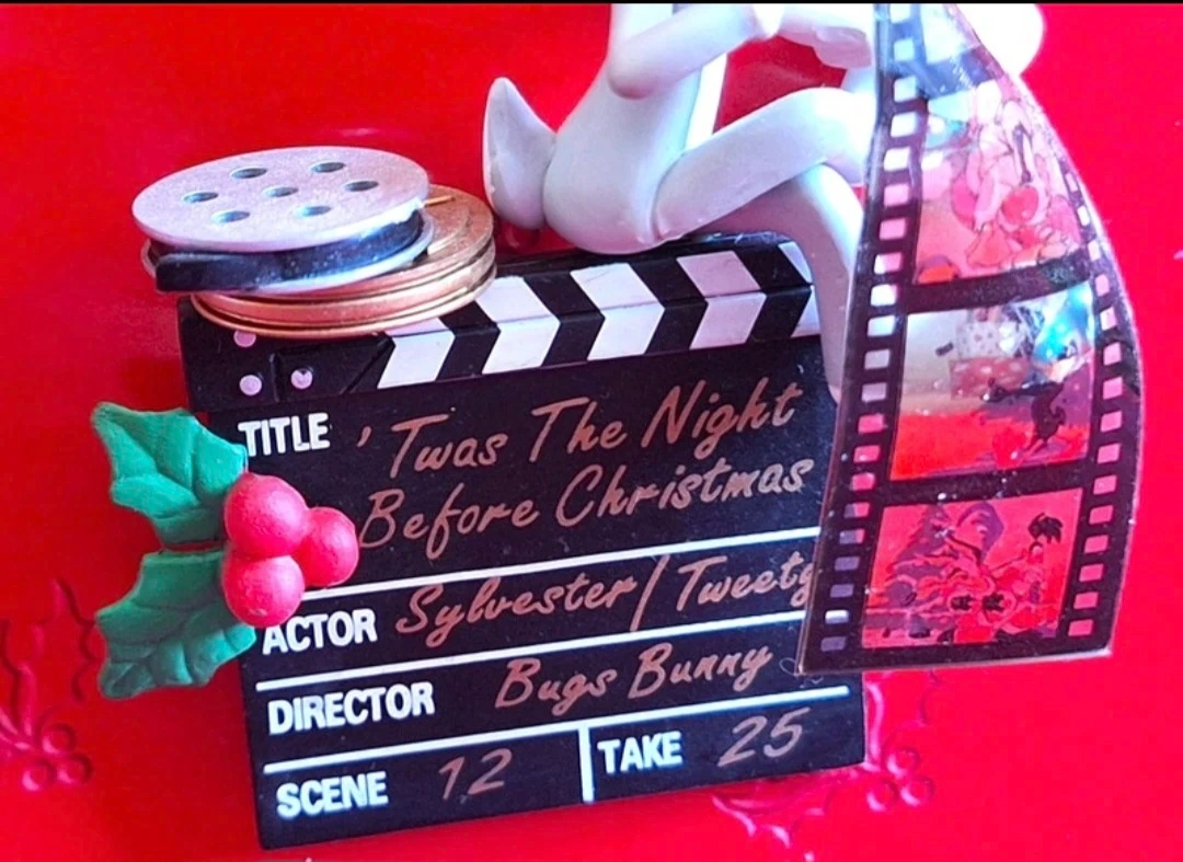Vintage Looney Tunes Christmas Ornament, Bugs Bunny In Director's Chair 1996. Movie 'Twas The Night Before Xmas'. Size 9cm ( 3.5" ) in height.