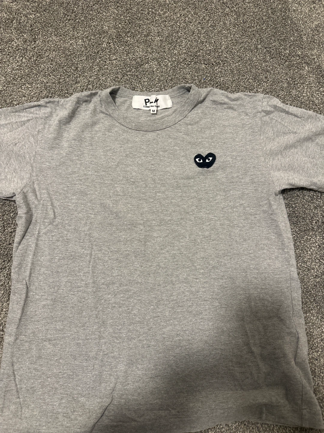Selling a Comme des Garçons PLAY t-shirt in grey. It's a size medium and features the iconic heart logo. Great for casual wear
