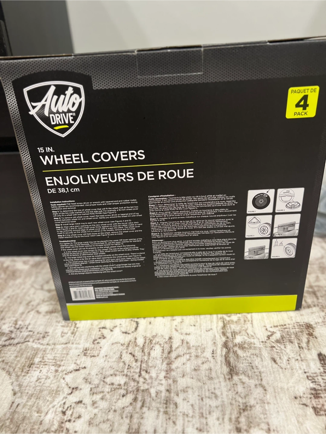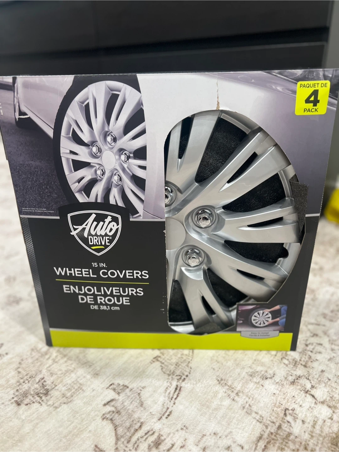 Selling a brand new set of Auto Drive 15-inch wheel covers! They come in a pack of 4 and are still in the original box. Perfect for giving your car a fresh look!