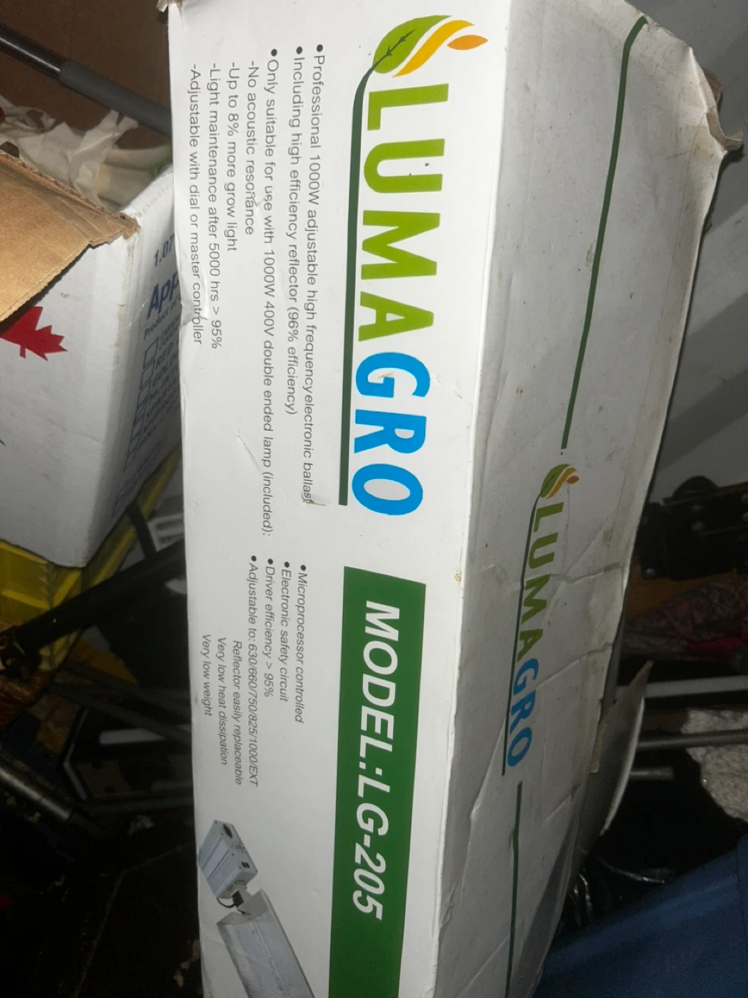 Selling a Lumagro LG-205 1000W adjustable high-frequency electronic ballast grow light. It includes a high-efficiency reflector (96% efficiency). It's suitable for use with 1000W 400V double-ended lamps. It also has adjustable to 630/660/750/825/1000 EXT reflector easily replaceable option save