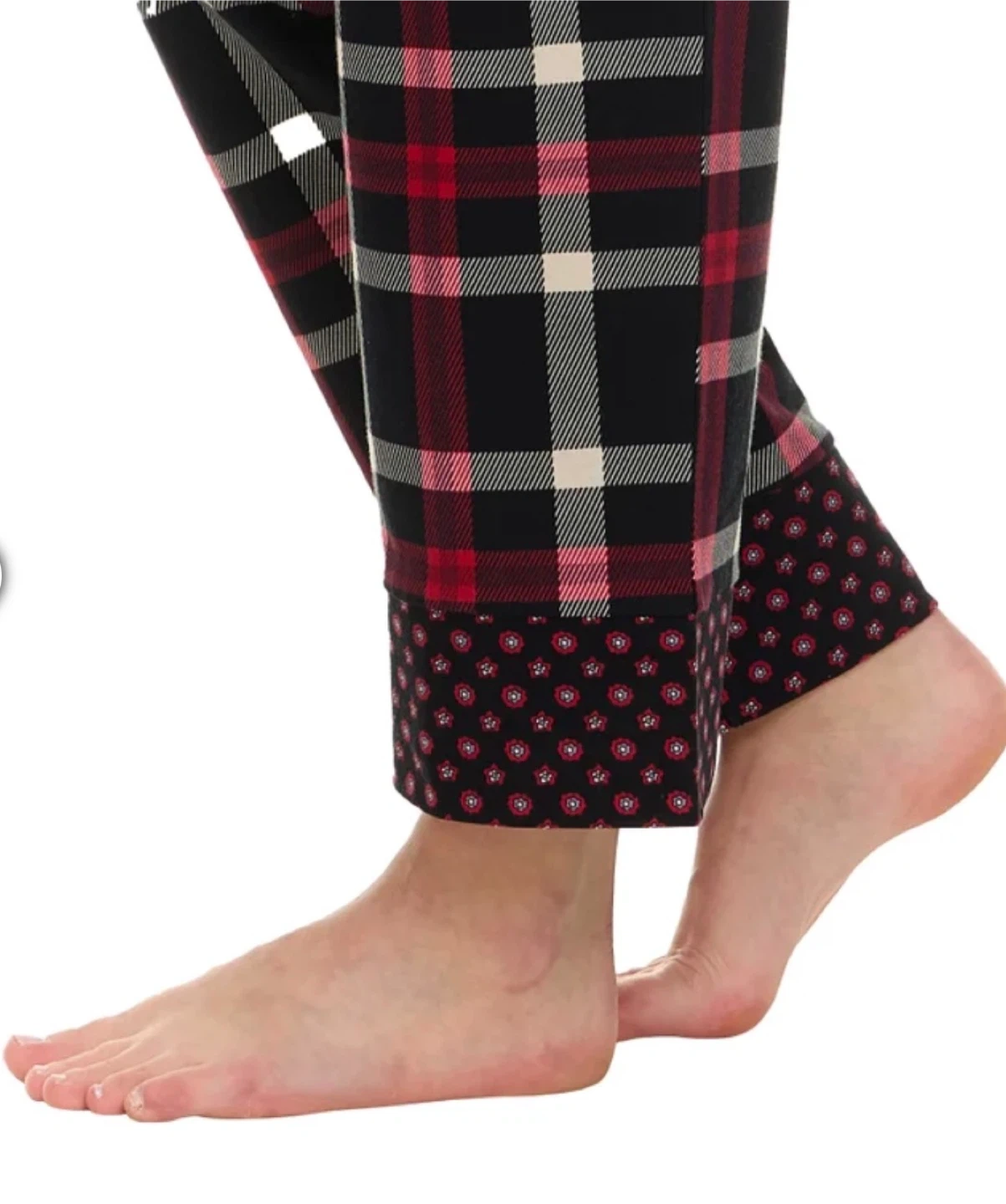 I'm selling a super comfy plaid pajama set! It features a classic button-down top and matching pants, perfect for cozy nights in. The material is soft and warm, ideal for the cooler weather