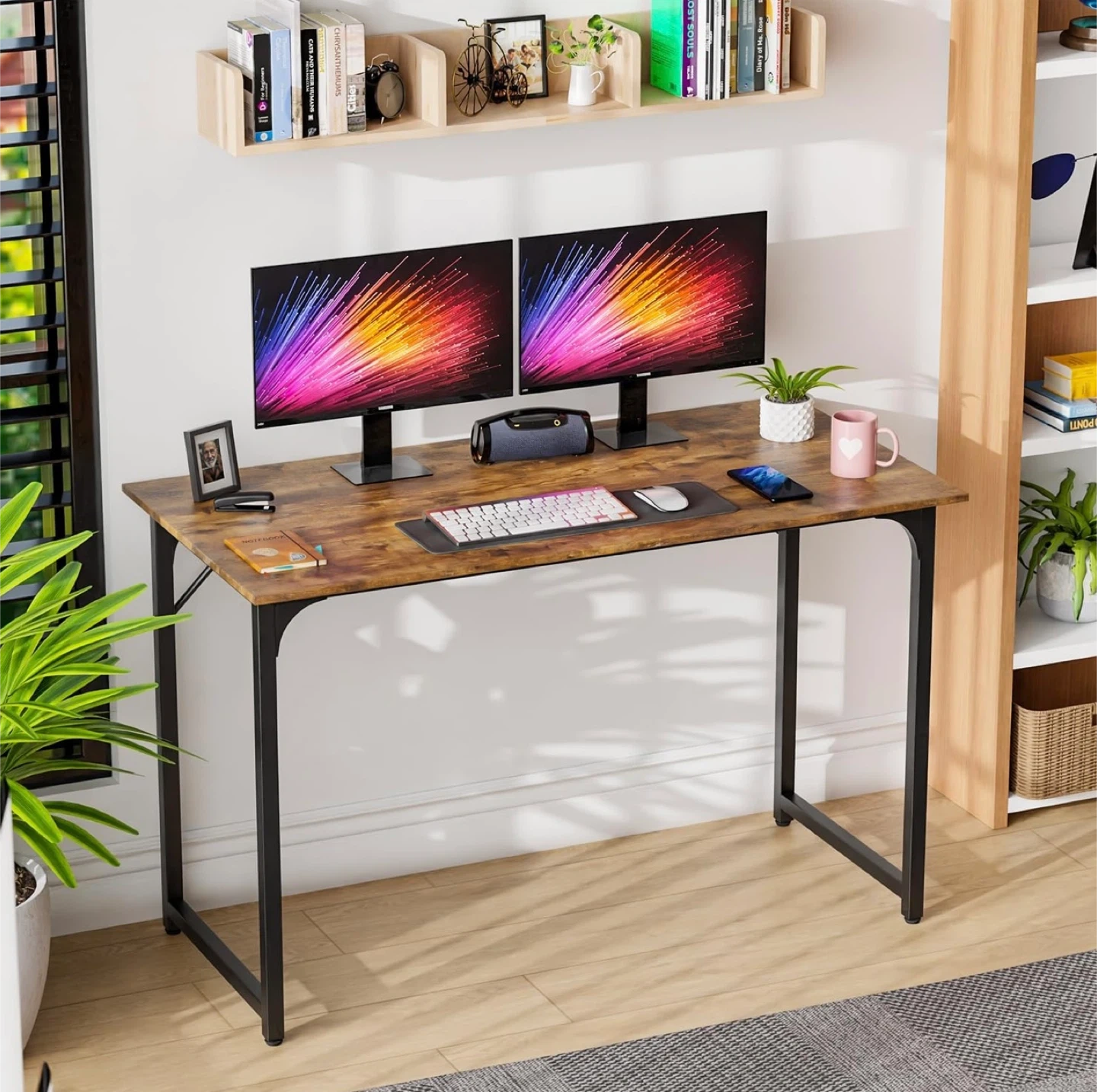 Selling a rustic brown computer desk. It measures 47 inches in length, 20 inches in width, and 30 inches in height. Please note that there are some scratches on the surface.