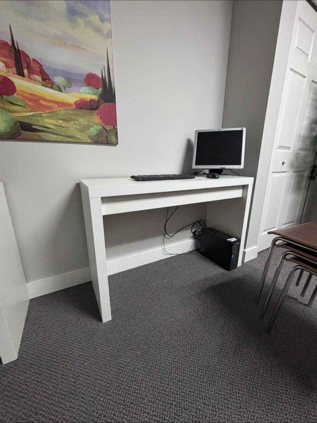 Selling a simple white desk! It's in great shape and perfect for a home office or study space. The desk measures approximately 47 inches in width, offering plenty of room to work. It also features a handy drawer for storage