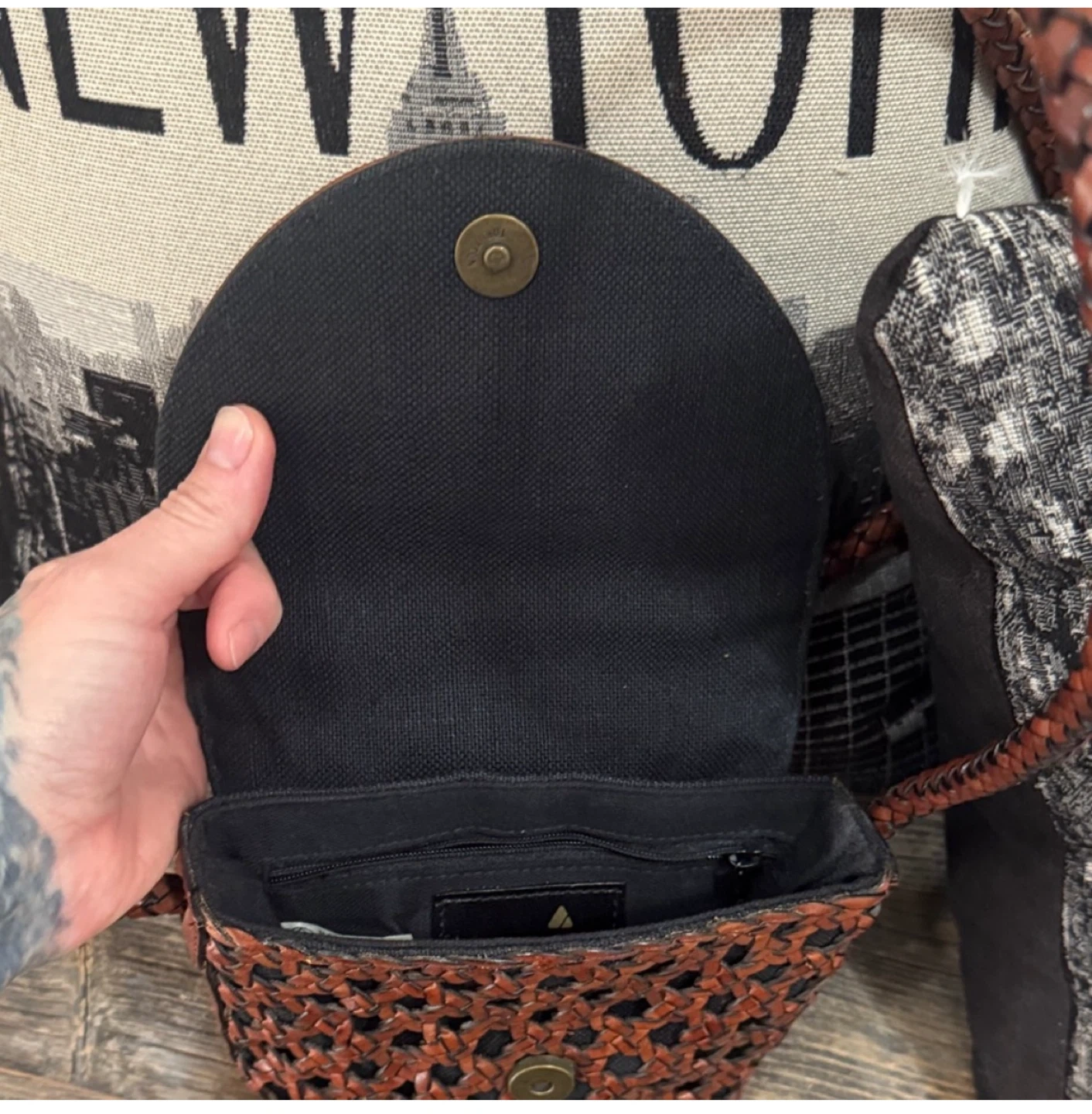 This elegant brown woven bag is perfect for any occasion. Its stylish design adds a touch of sophistication to your outfit.