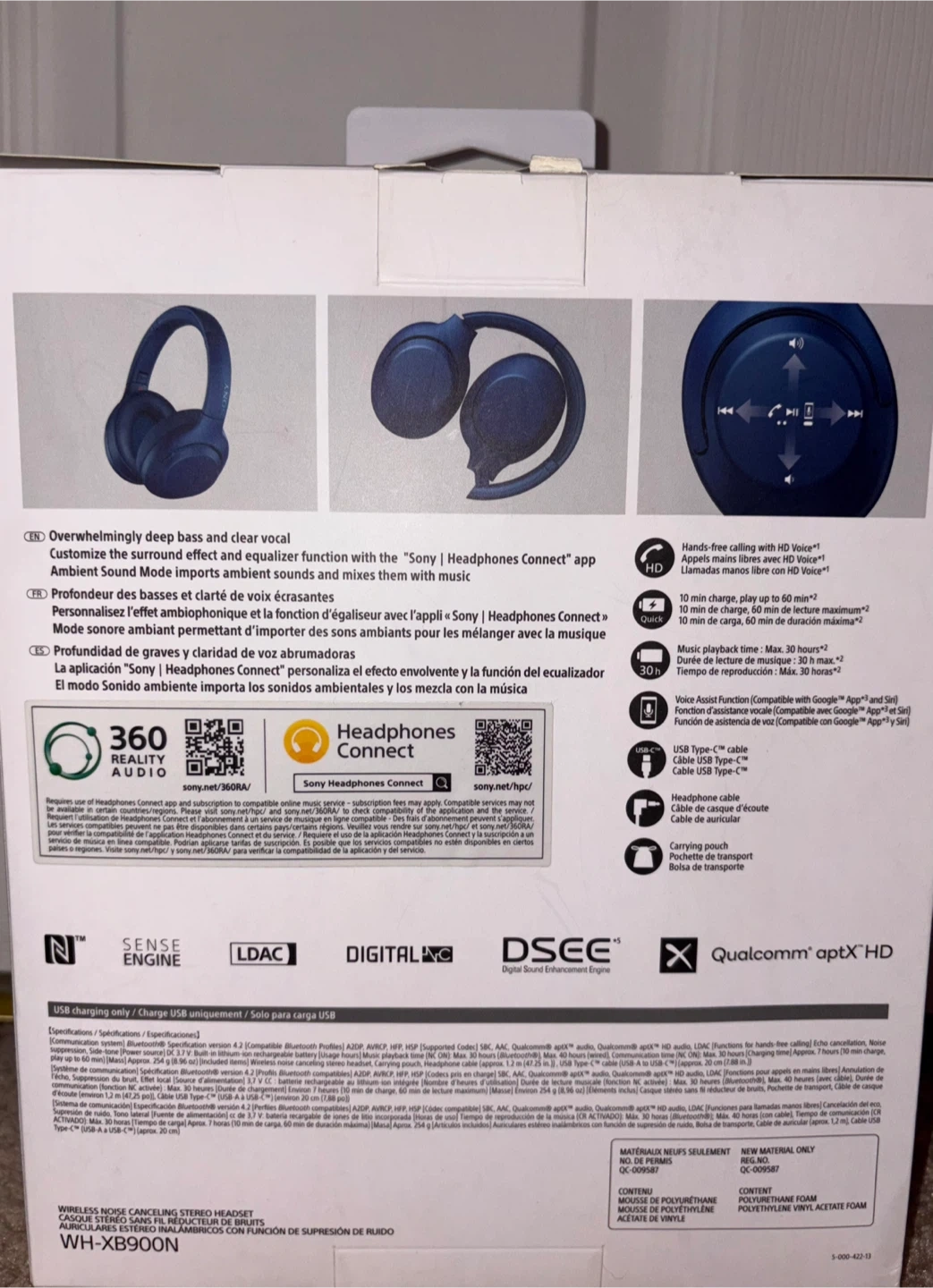 Selling a pair of Sony WH-XB900N Extra Bass wireless noise-cancelling headphones in great condition! These headphones deliver overwhelmingly deep bass and clear vocals. They also have a customizable sound effect and equalizer function with the Sony Headphones Connect app.