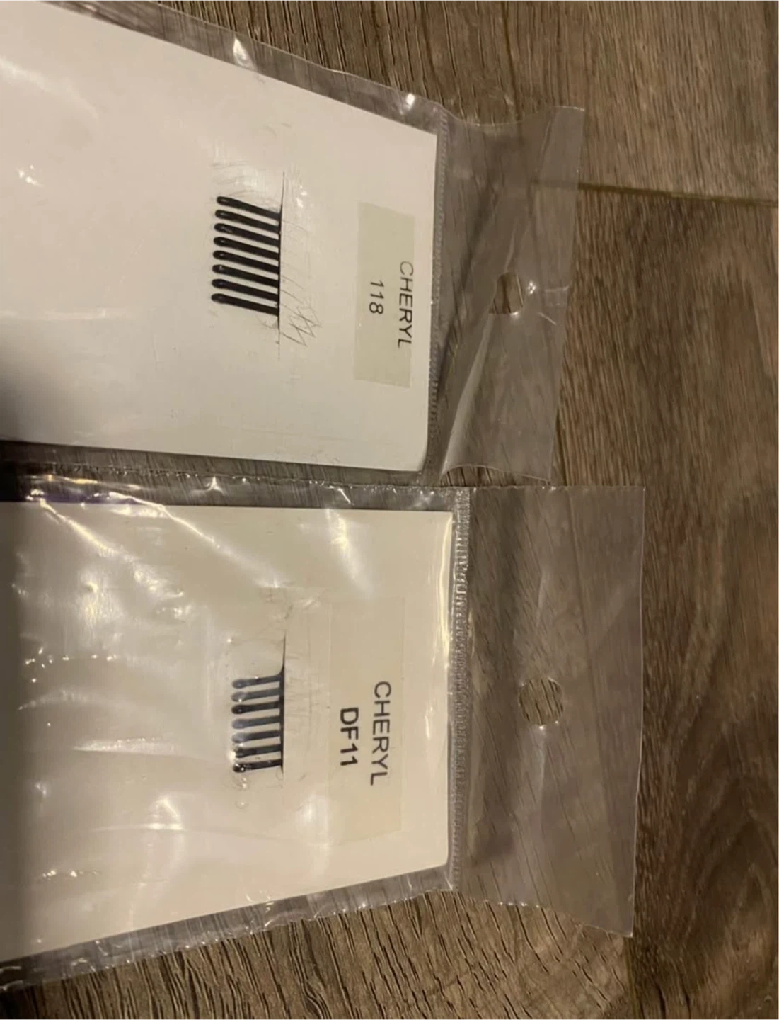Selling two sets of hair extensions. One is Cheryl, number 118 and DF11, and the other is Butterfli, in burgundy and purple. They're still in their original packaging