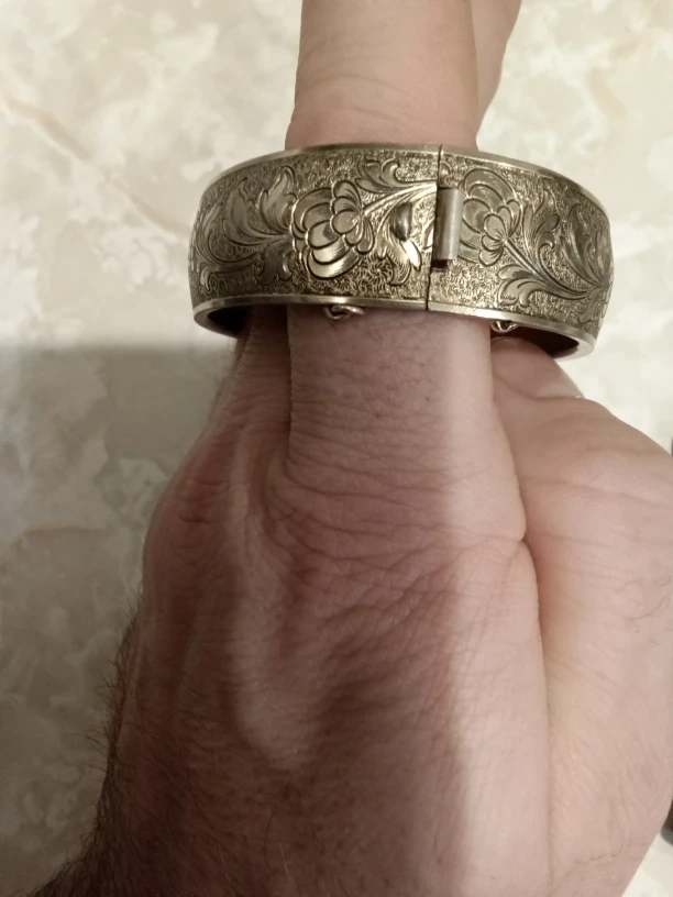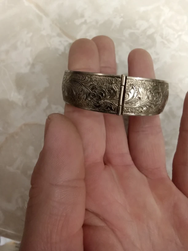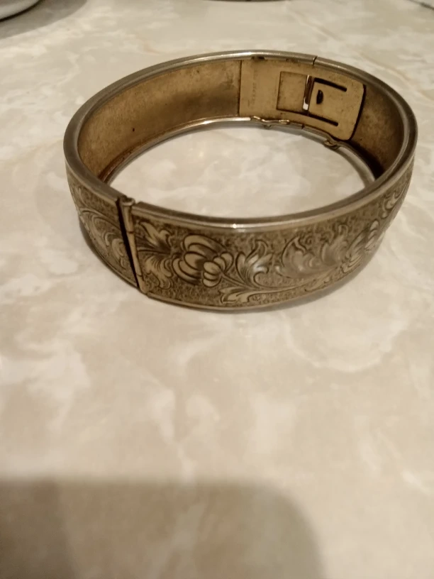 Selling a vintage bangle bracelet with a beautiful floral engraving. It's a lovely piece to add to your collection!