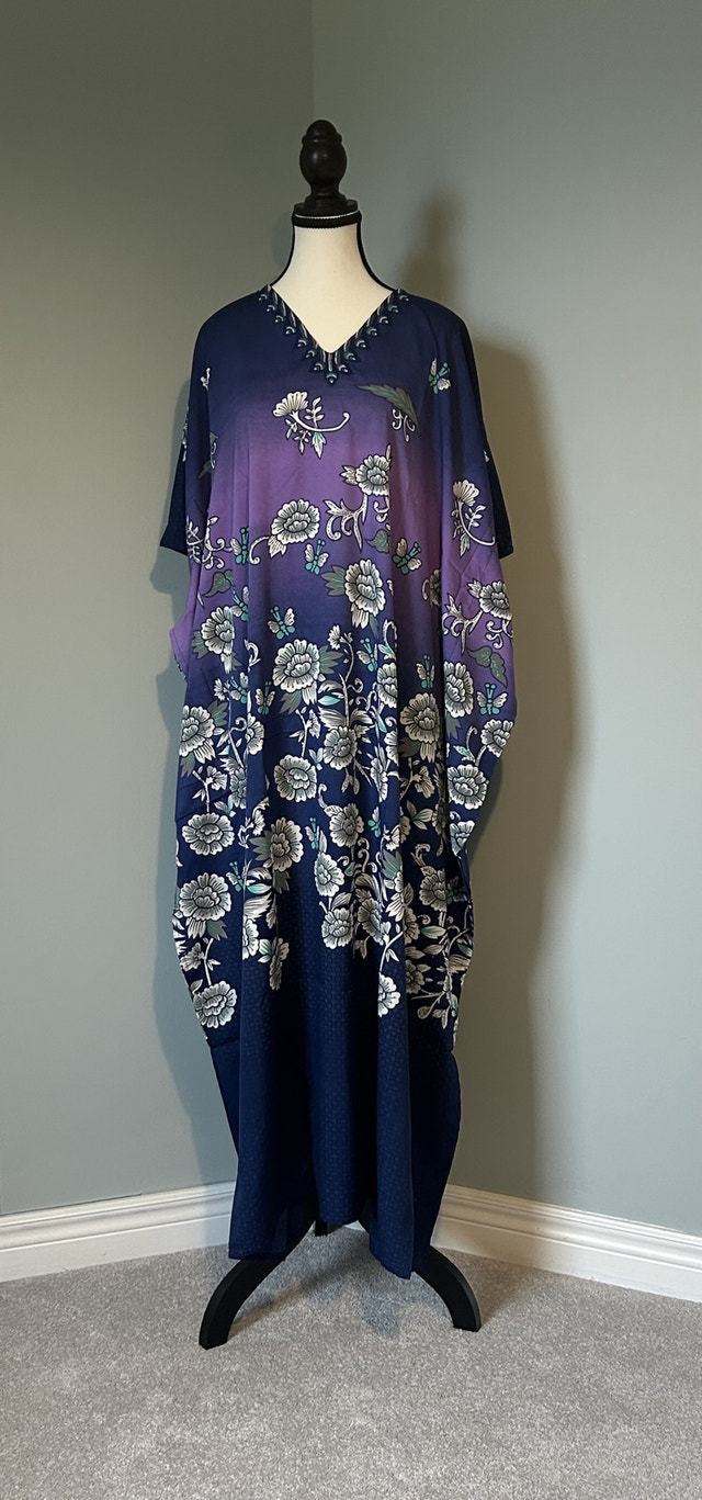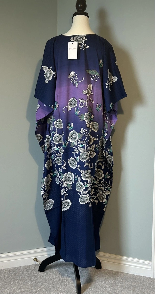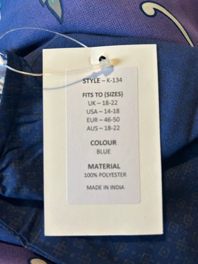 Add a touch of elegance to your wardrobe with this Miss Lavish London caftan, featuring a beautiful floral print on a flowing, comfortable fabric, perfect for lounging or special occasions. This caftan fits sizes UK 18-22, USA 14-18, EUR 46-50, and AUS 18-22 and is made of 100% polyester. This item is new with tags. Here are some more details about this lovely caftan: * **Brand**: Miss Lavish London * **Style**: K-134 * **Sizes**: Fits UK 18-22, USA 14-18, EUR 46-50, AUS 18-22 * **Colour**: Blue * **Material**: 100% Polyester * **Made In**: India