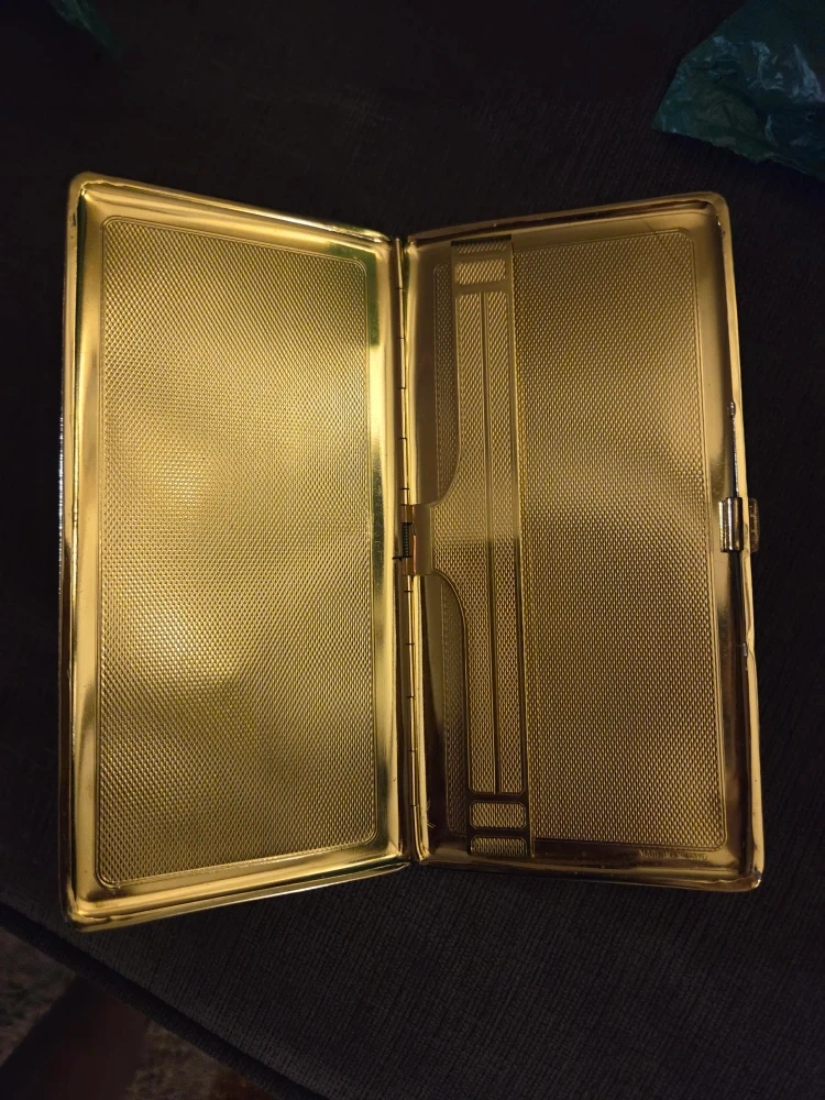 Selling a vintage cigarette case with a gold-tone finish! It has a sleek, classic design, perfect for collectors or anyone who appreciates a touch of retro style. The case is in good condition, with a secure clasp and a clean interior. It's a great accessory or a unique gift idea