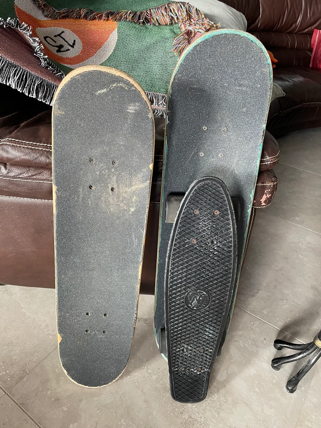 Selling three used skateboards. They have some wear and tear, but are still ready to ride. Great for beginners or experienced skaters looking for a project.