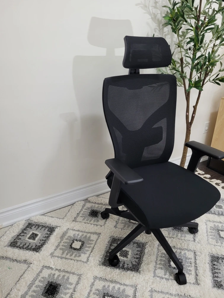 Looking to sell this ergonomic office chair. It features an adjustable headrest for height and angle. Great for working from home or just needing some extra support!