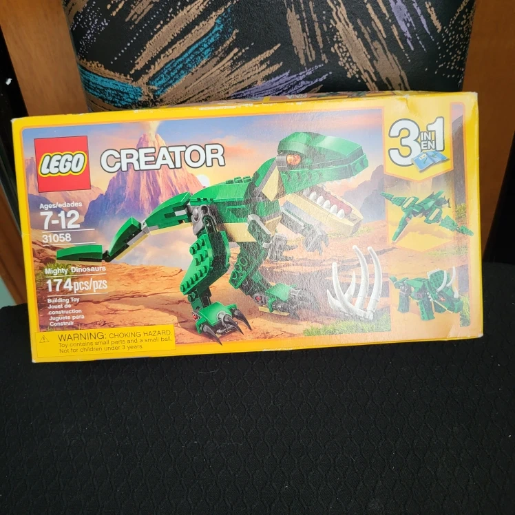 Selling a LEGO Creator 3in1 Mighty Dinosaurs set (31058). This set allows you to build three different dinosaurs from the same bricks. It's recommended for ages 7-12 and includes 174 pieces. The box is included!