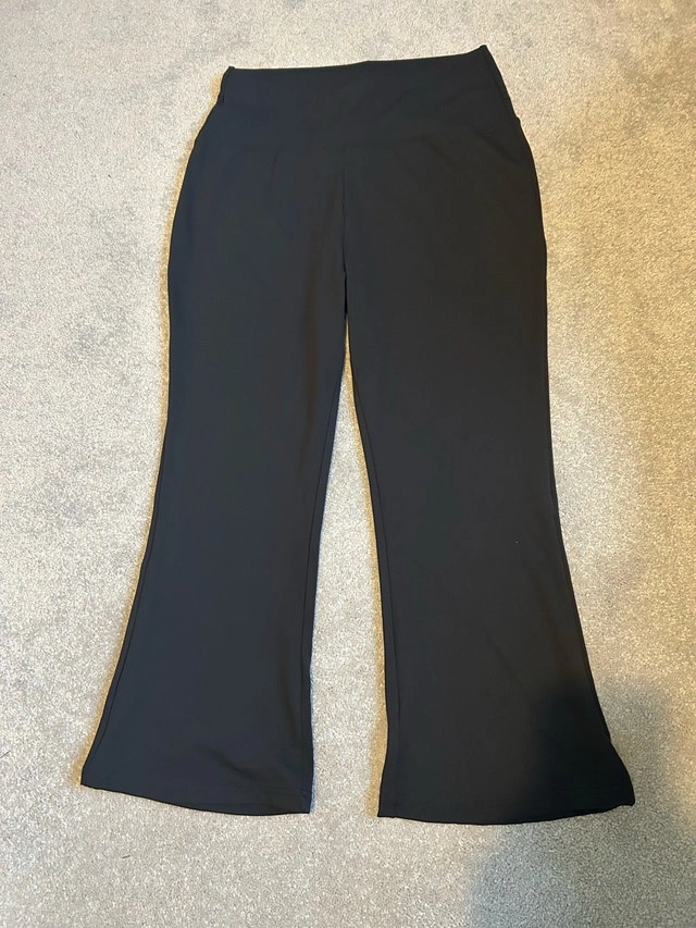 Designed with a high-rise crossover waistband, the butt-lifting flared leggings provide optimal tummy control and support, which lends itself to superior comfort and stability. A gusset that sits where the crotch meets the inseam provides a flat layer that smooths out contours.