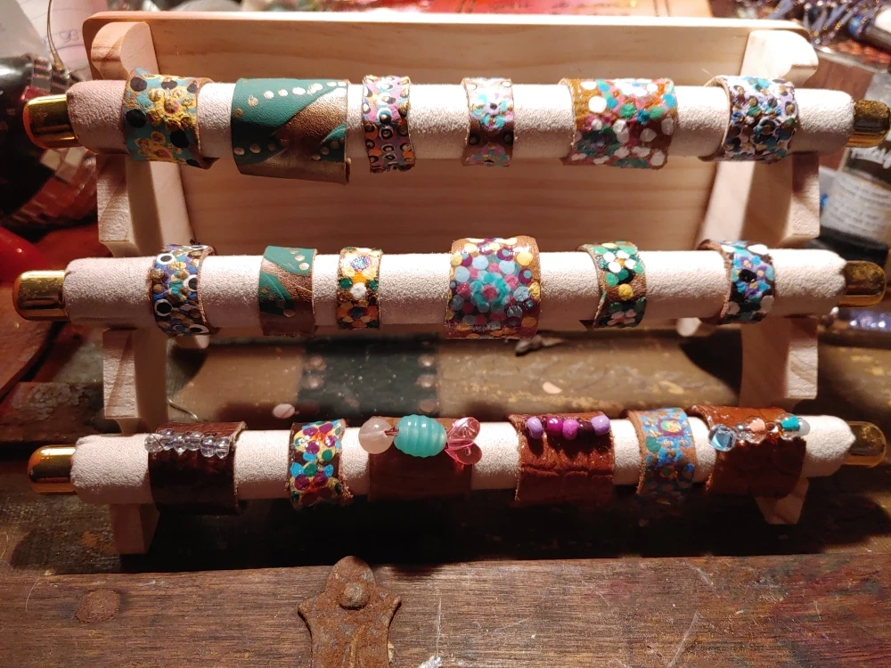 Check out these unique, handmade leather rings! Each one is crafted with care and features a different design. Perfect for adding a touch of artistry to your style!