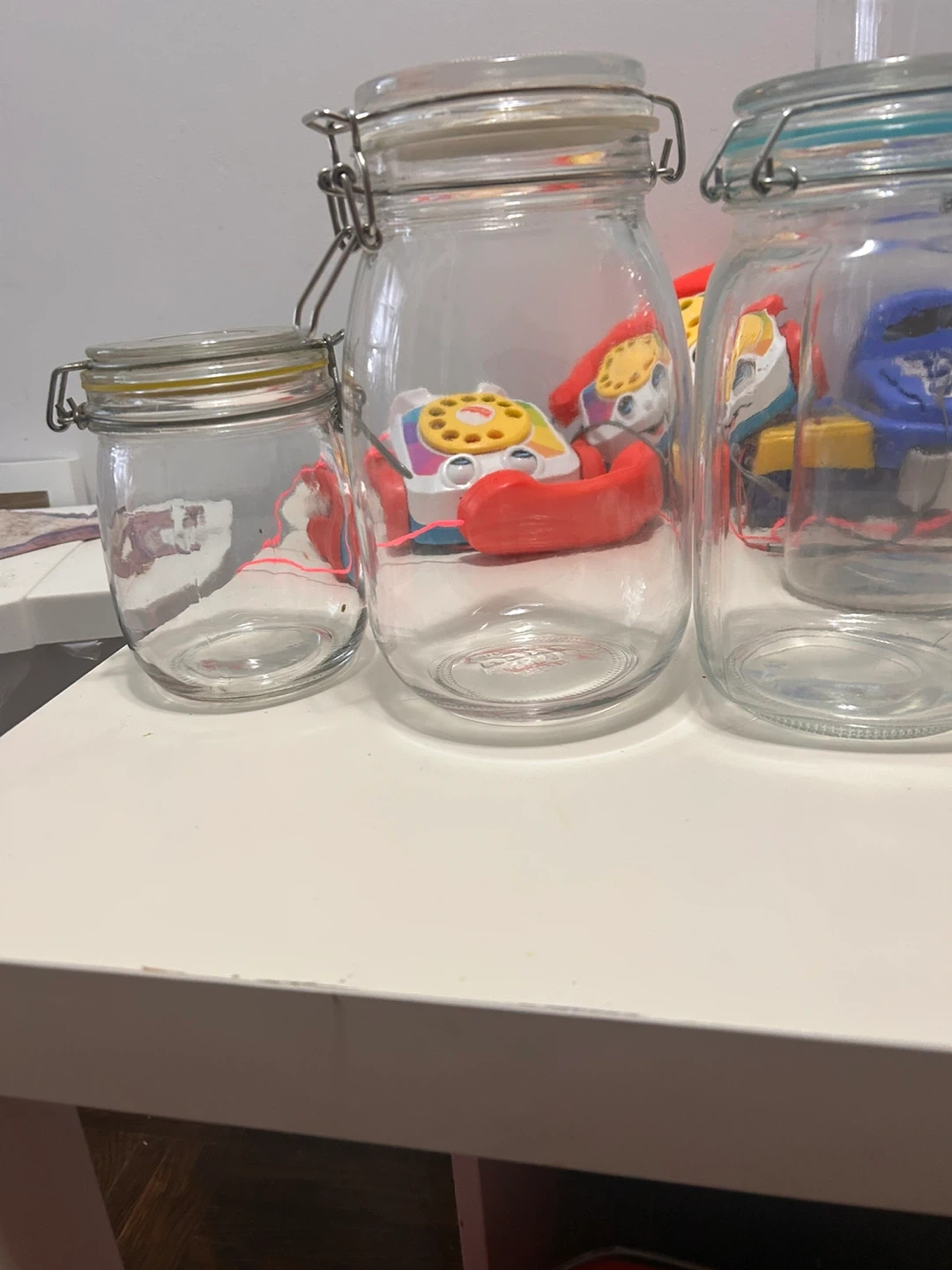 Selling a set of three glass storage jars. They're in great condition and ready to be used for all your storage needs! Perfect for pantry items, crafts, or anything else you can think of