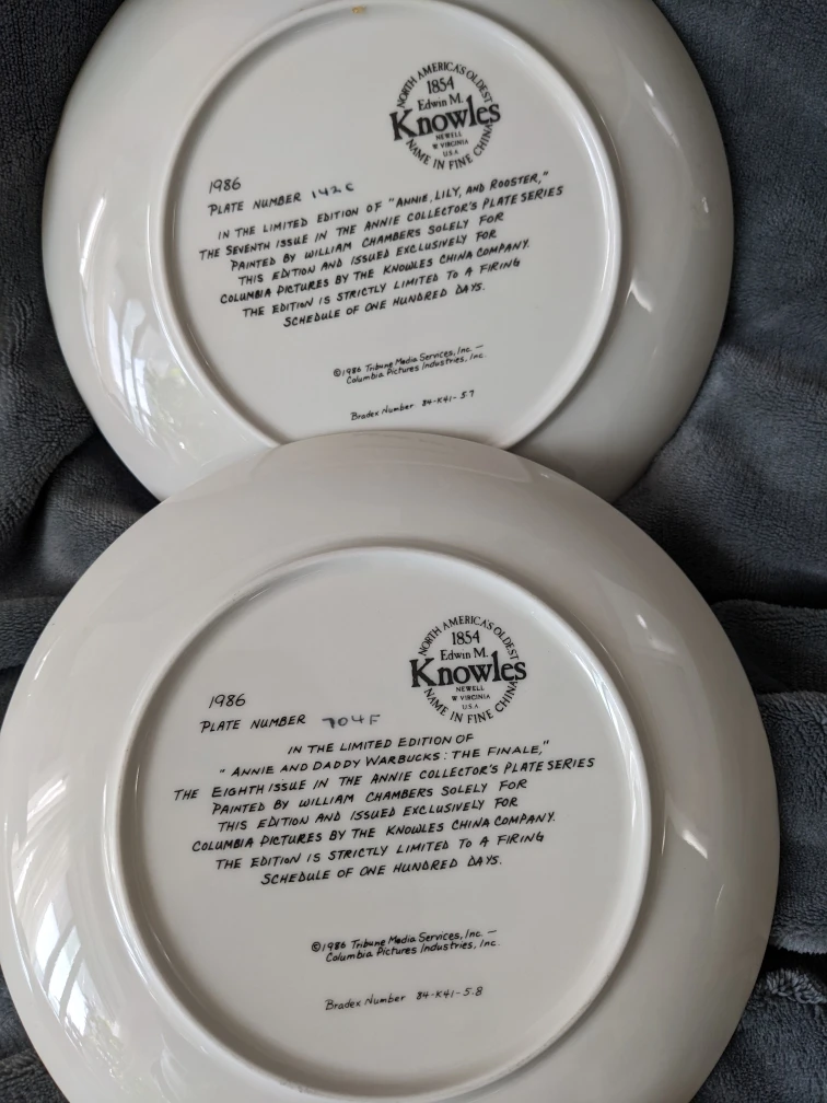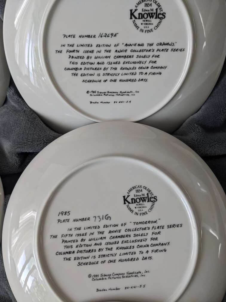 Selling a set of 7 Knowles collector plates featuring scenes from Annie! These are from the limited edition "Annie and Sandy" series, painted by William Chambers. Each plate is in fine condition and ready to be displayed