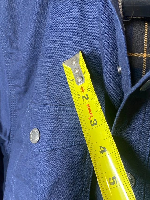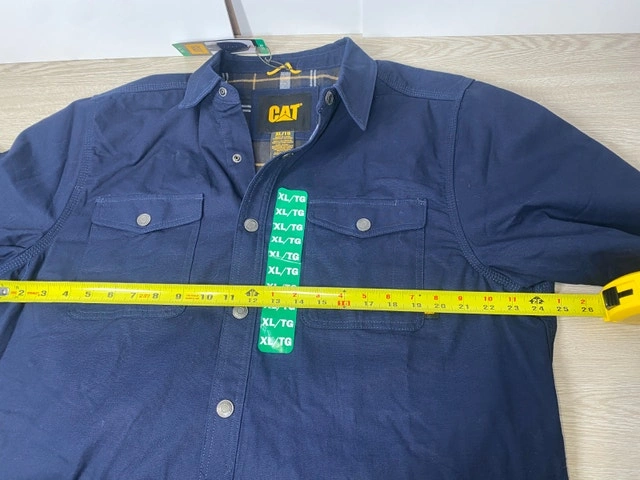 Airdrie, Morningside pickup. Men's XL Caterpillar Shirt Jacket. For Costco. New with tags. ** Small area of slight dust/dirt which needs a wash - I didn't want to remove the tags to clean it. Pictured. * Metal snap buttons. * Dual front breast pocket. * Inner pocket. * 2 exterior hand pockets. * Shell 100% cotton. * Body lining 60/40 blend. * Sleeve lining polyester. Size XL *** Please see pictures for specific sizing R1-2-1874-12