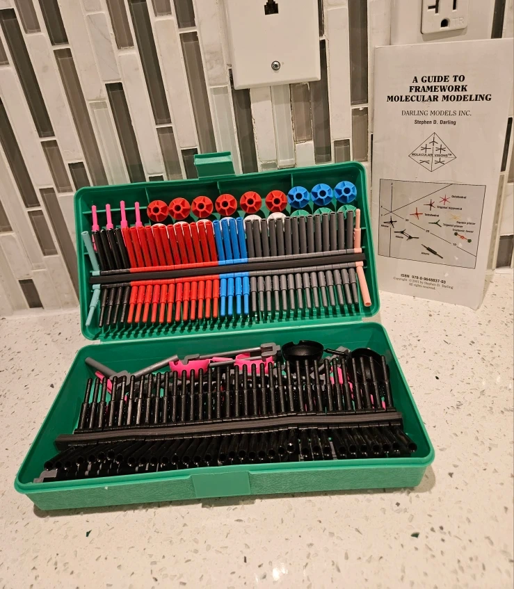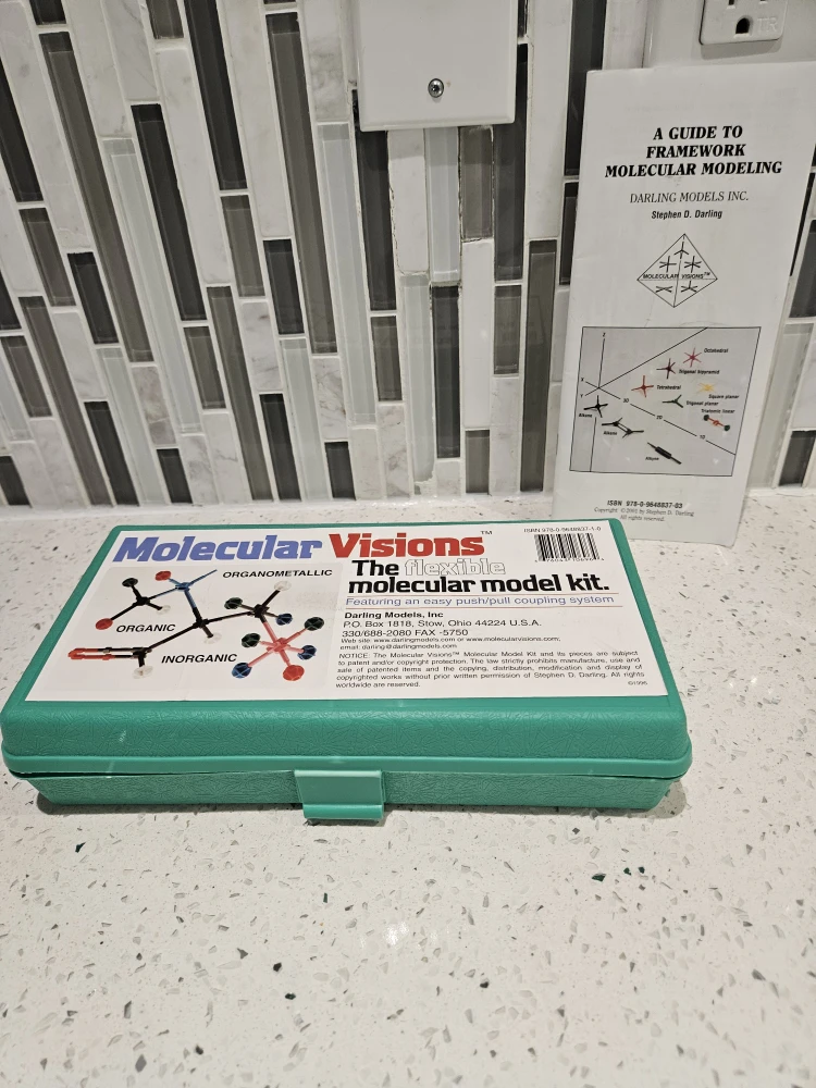 I'm selling a Molecular Visions molecular model kit! It features an easy push/pull coupling system. Included is a guide to framework molecular modeling.