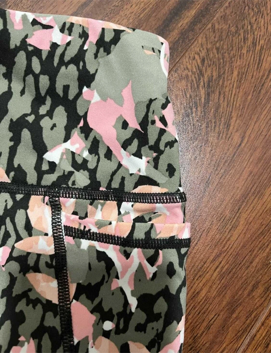 Pink, peach and khaki green abstract tropical camo print. Smoke free home.