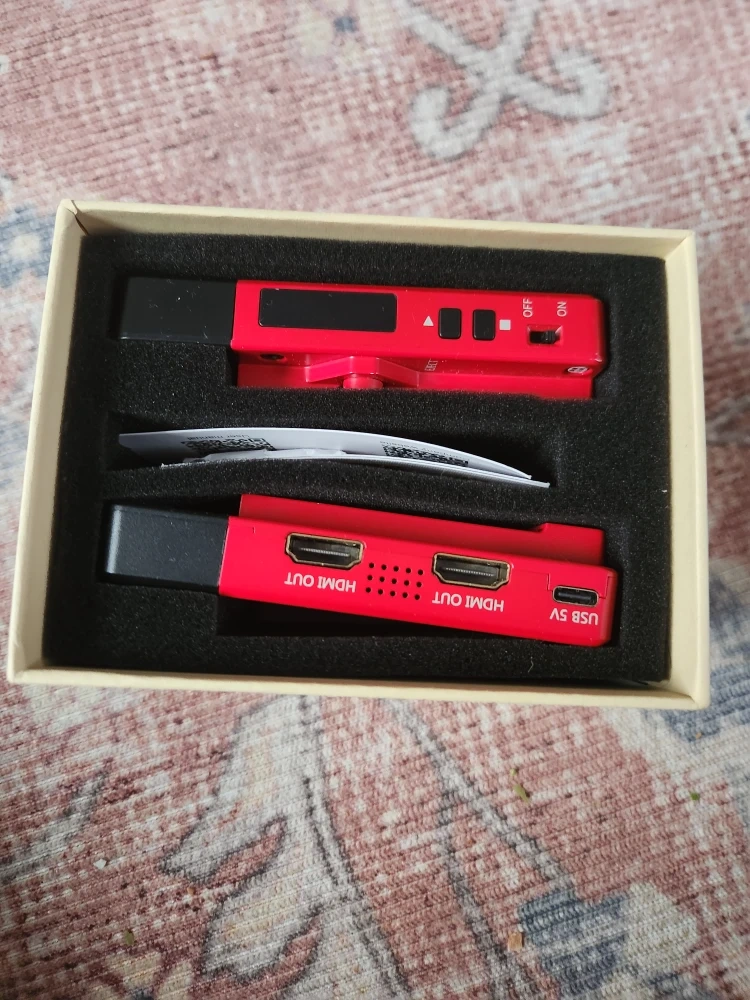 Selling a Shimbol TP Mini TX/RX Wireless HDMI Transmitter! It comes with the box and all components. It's in great condition and ready to use. Perfect for streaming or presentations!