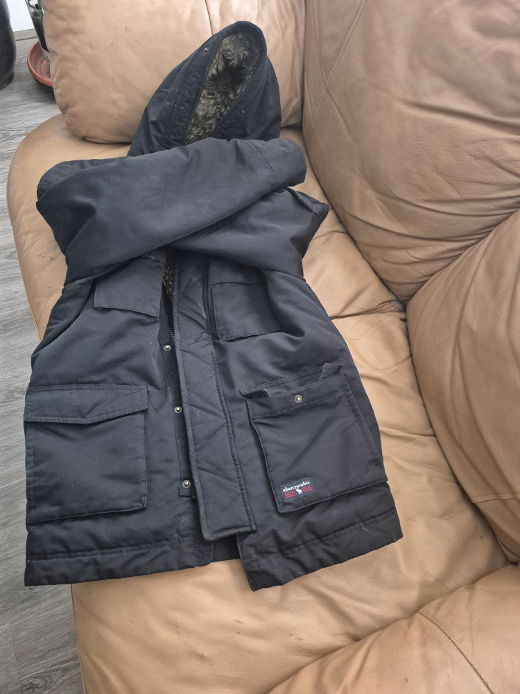Cozy Abercrombie Kids winter coat in black, perfect for keeping your little one warm! It's a size 13/14 and features a faux fur lining
