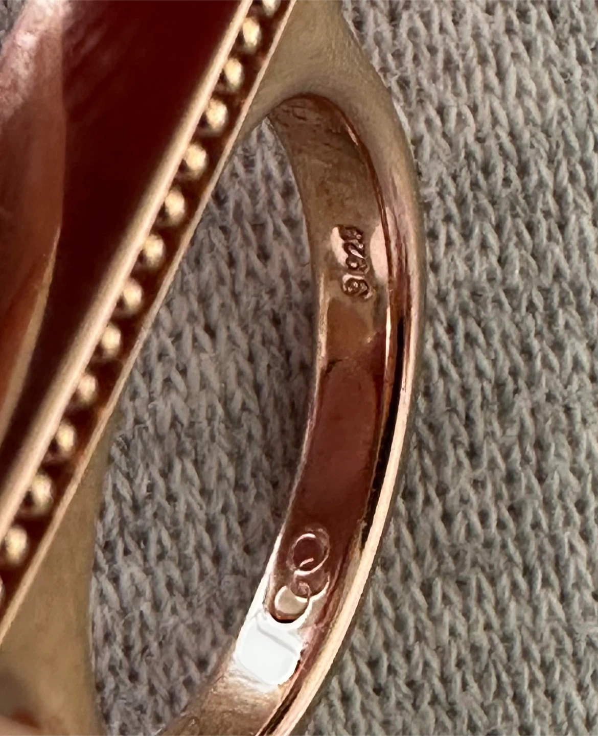 Selling a lovely rose gold ring marked with '925', indicating it's made of sterling silver. It's in great condition and would make a beautiful addition to any jewelry collection!