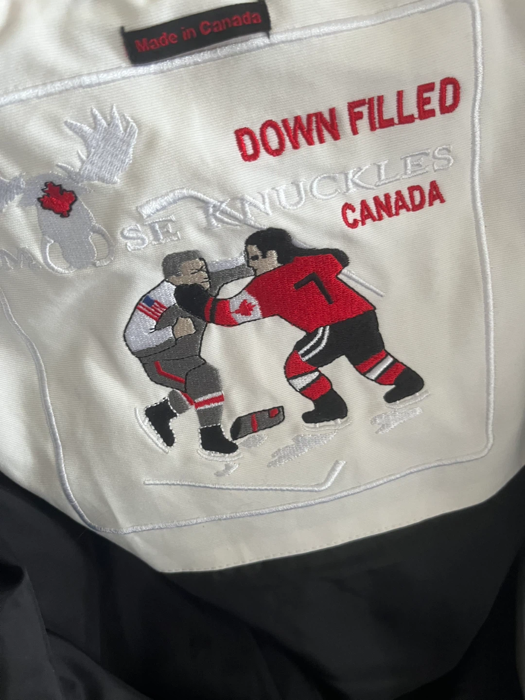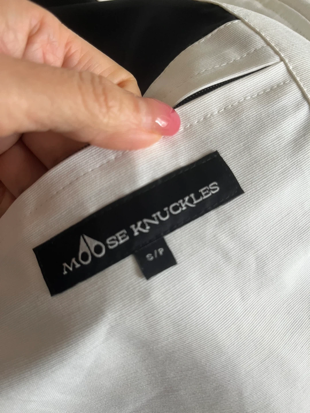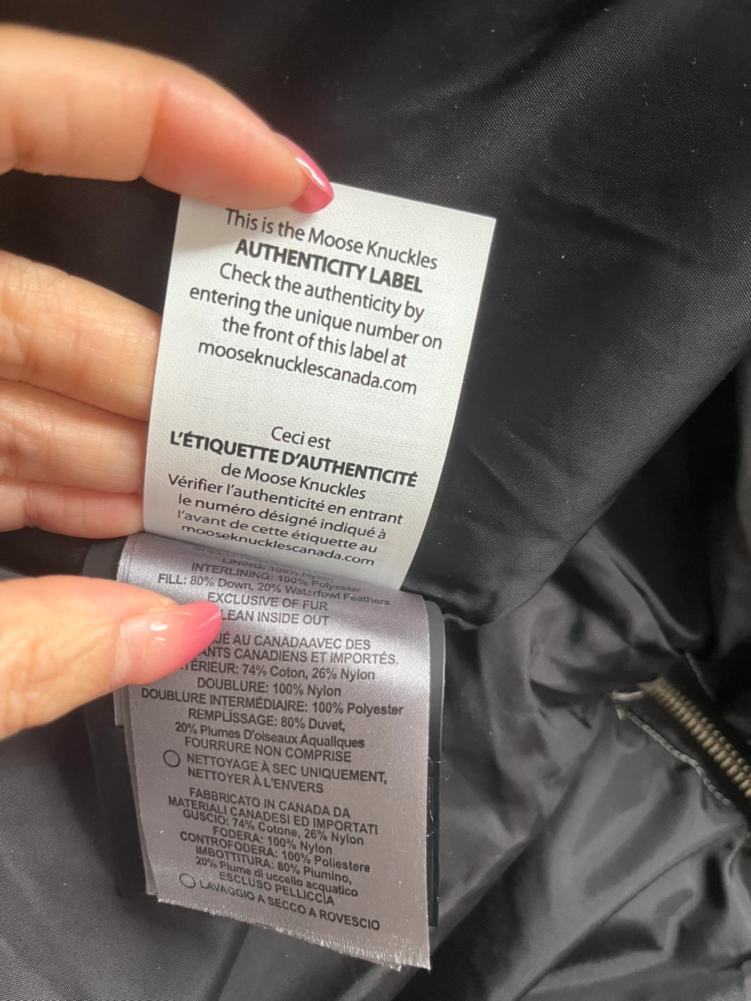 Selling a Moose Knuckles down-filled jacket in size S. It's a stylish and warm jacket perfect for the Canadian winter! The jacket is made in Canada and features a fill of 80% down and 20% waterfowl feathers. The outer and lining are made of 100% nylon, adding to its durability.