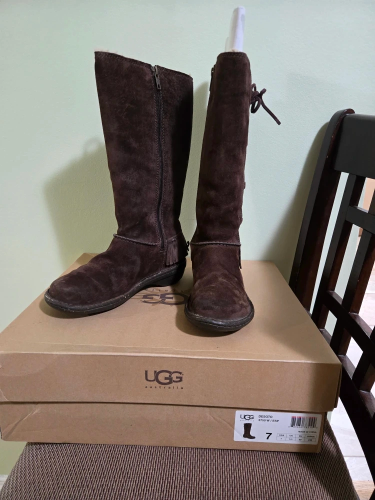 Selling a pair of UGG Desoto boots in size 7. They are a lovely brown colour and made of suede. The boots come with their original box!