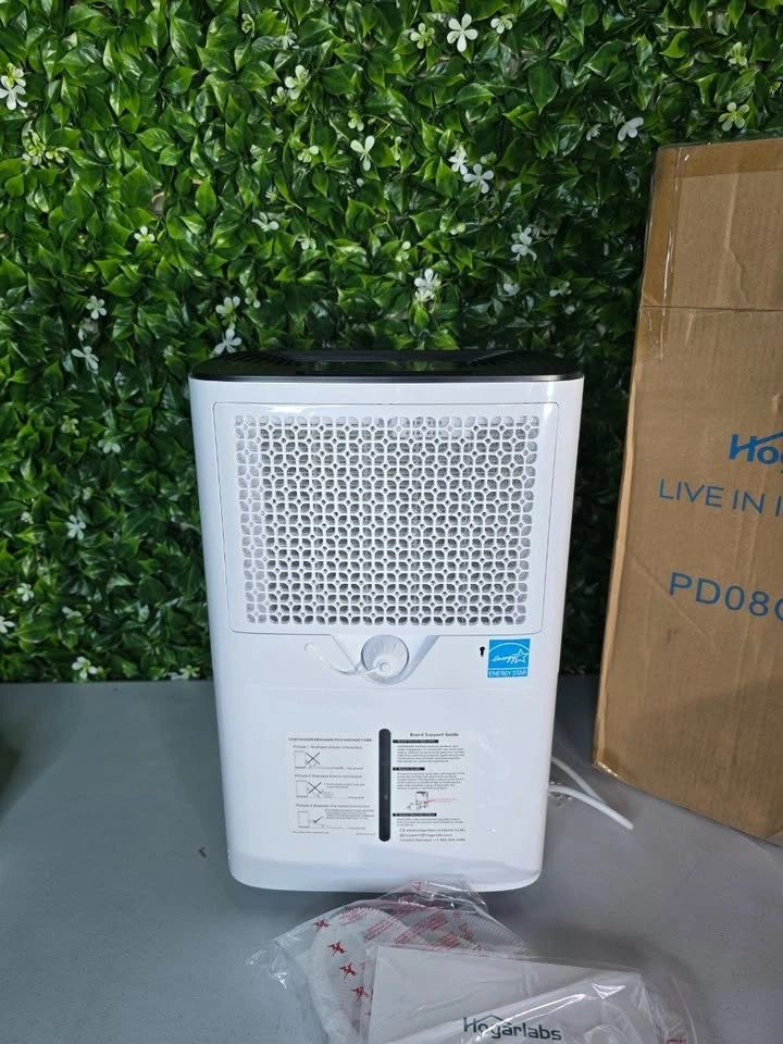 The HOGARLABS Smart Dehumidifier efficiently controls humidity levels, offering different modes for various needs, such as drying clothes or continuous operation. Its intelligent features, such as timer settings, auto shut-off, and washable filter, combined with a portable and quiet design, make it a versatile and user-friendly appliance for maintaining a comfortable living or working environment.