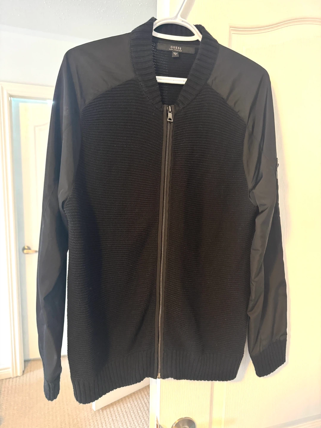 Selling a Guess Los Angeles jacket in black. It's a size medium and in great condition. Perfect for layering or wearing on its own!