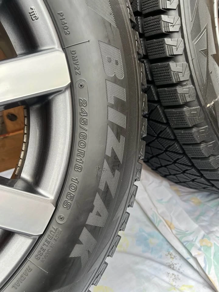245/60R18 OEM rims and 2024 Bridgestone New condition rubber tires. In excellent condition with no excuses for any damages or improper handling. Kept In normal temperature. Pick up at midland and Lawrence thanks!