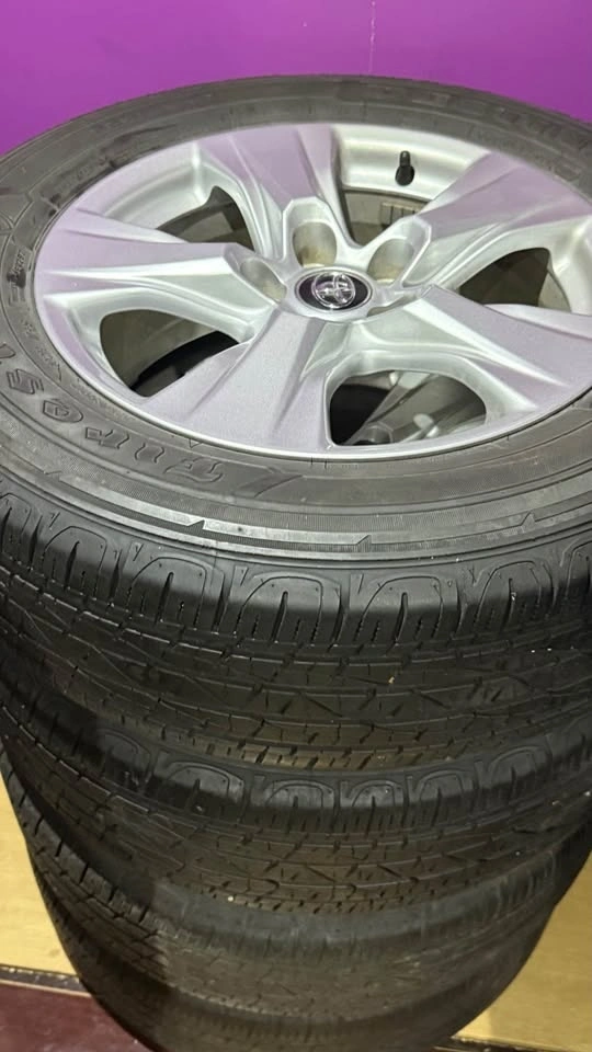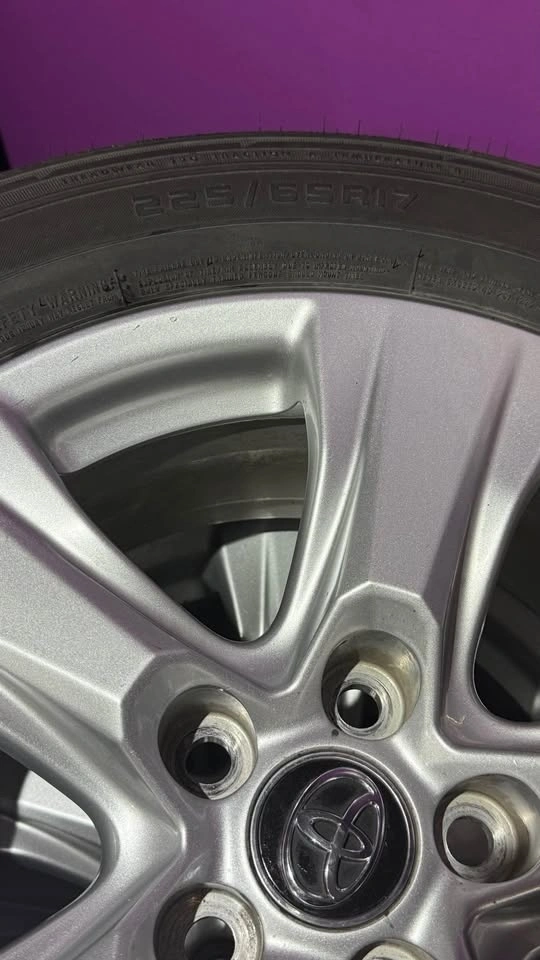 225/65R17 Firestone all season tires with original 17 inch Toyota alloy rims. Bolt pattern 5X114.3 came out Toyota RAV4, but it fits other Japanese vehicles as well. Pick up Scarborough