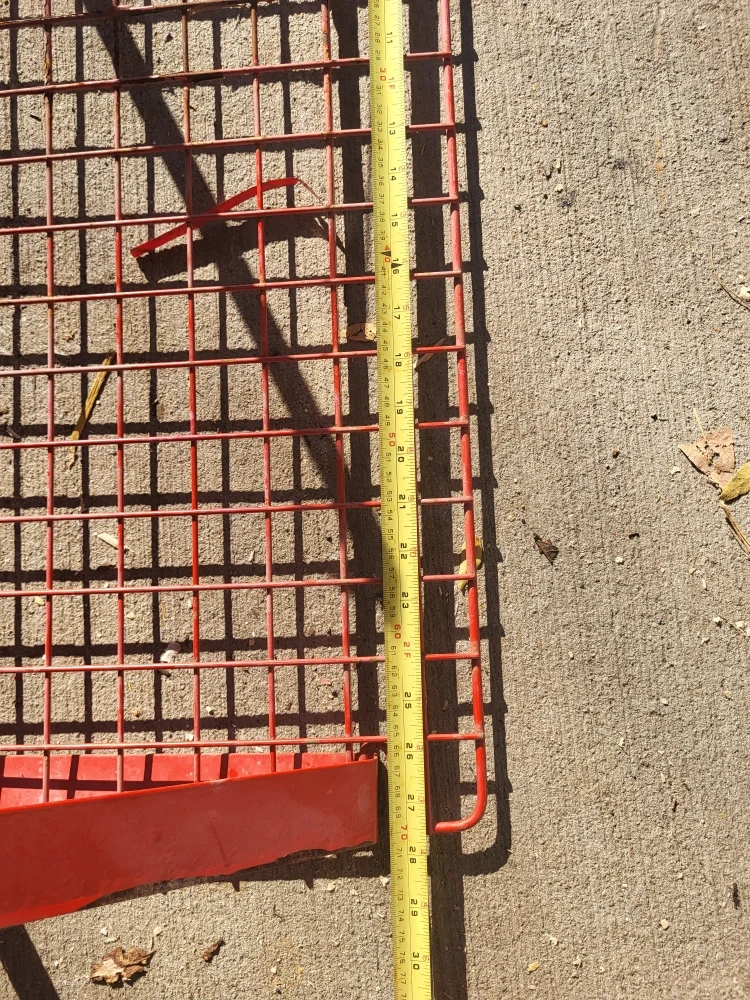 Selling a red metal wire shelf that's perfect for extra storage! It measures approximately 28 inches in length and 12 inches in width.